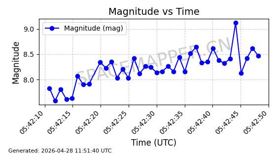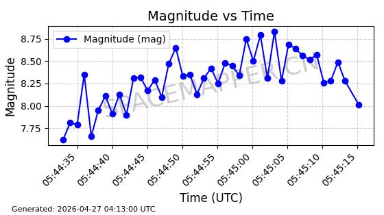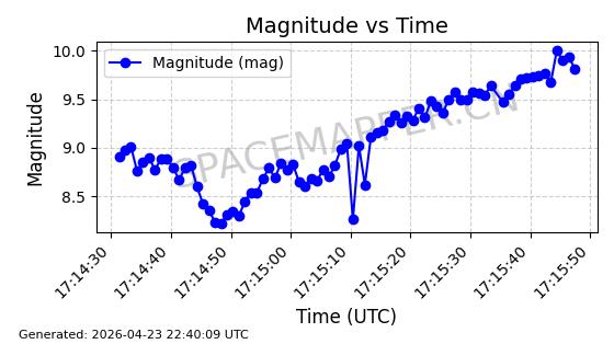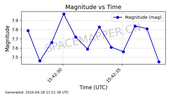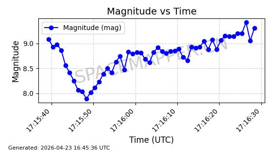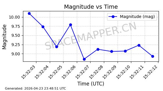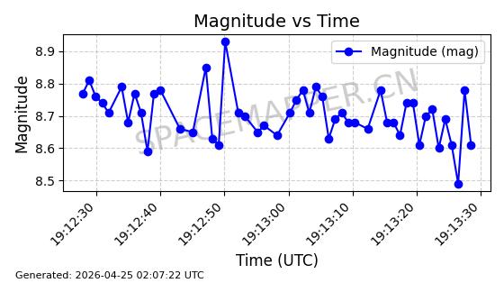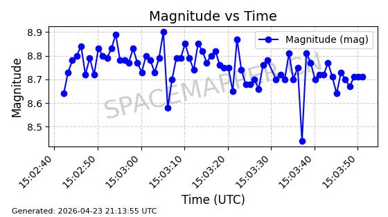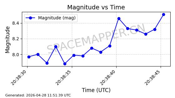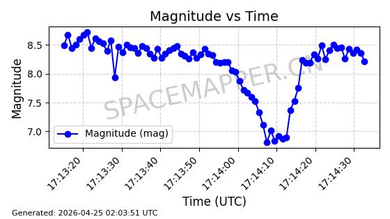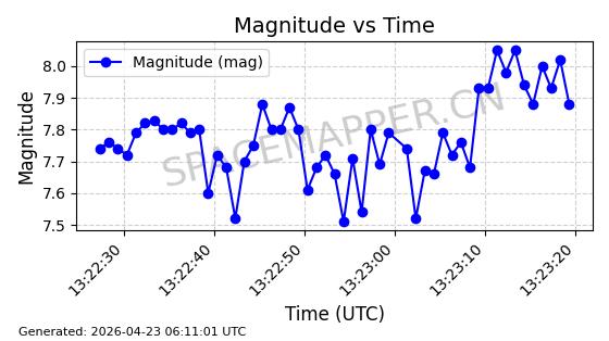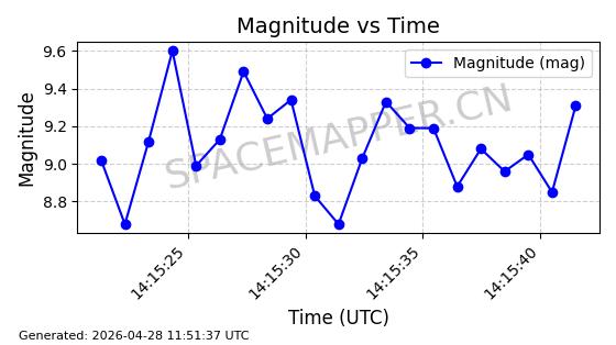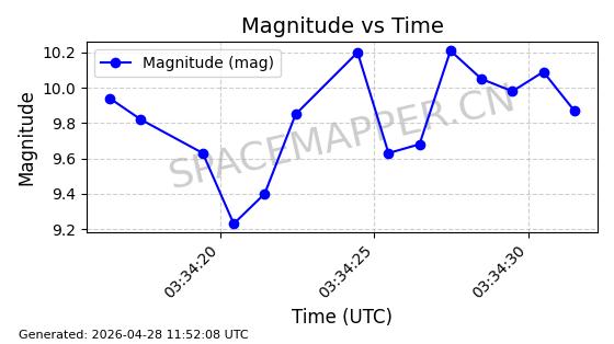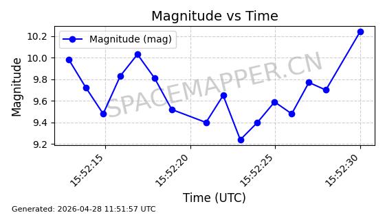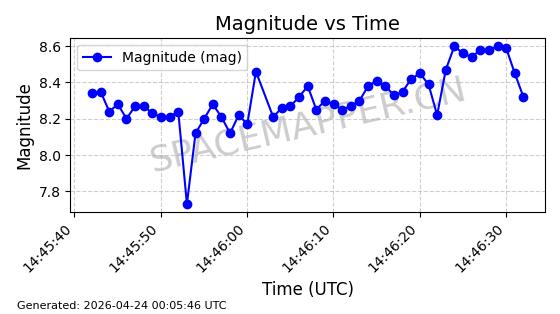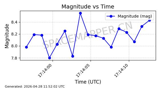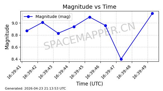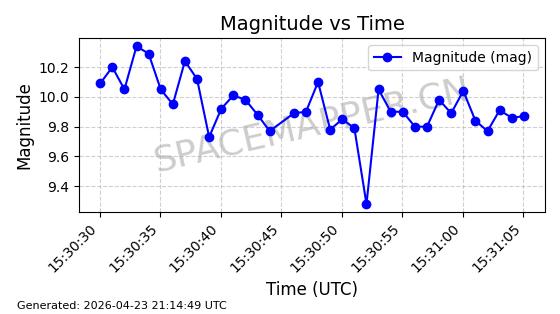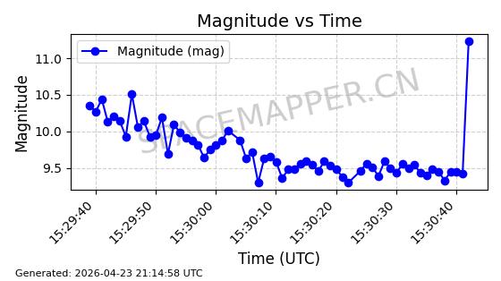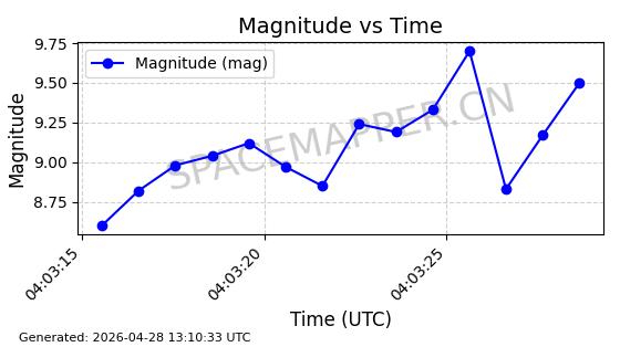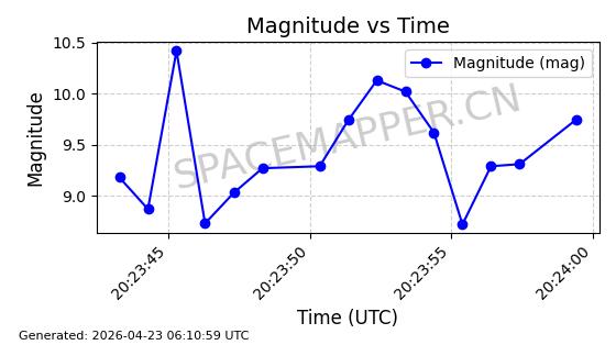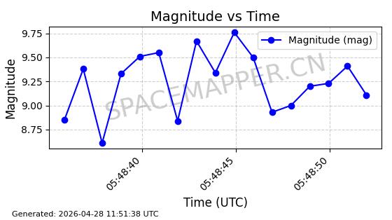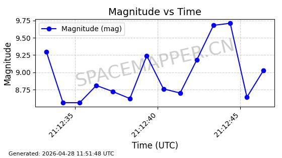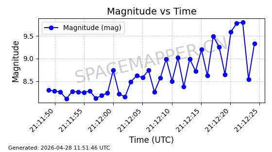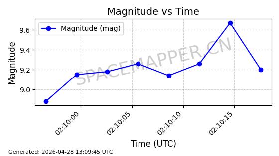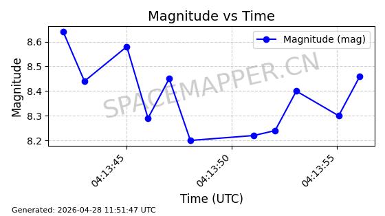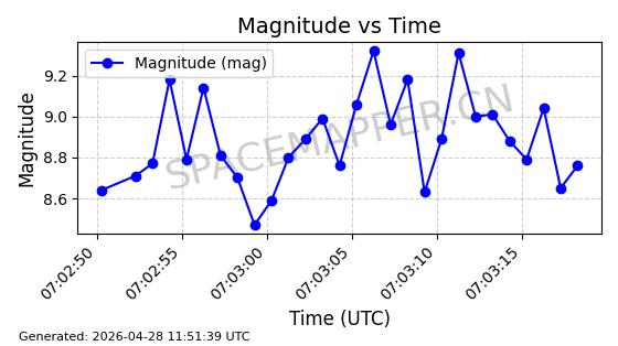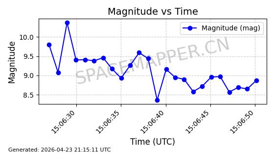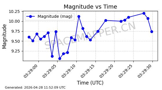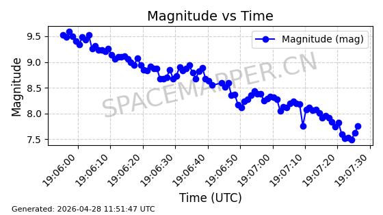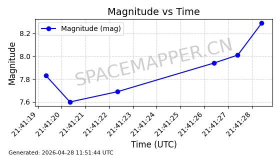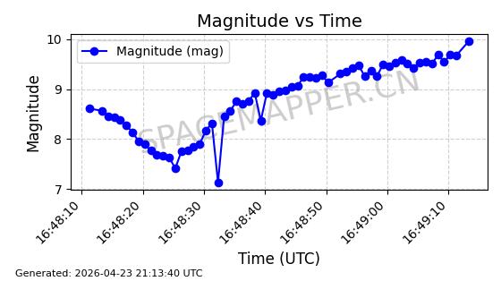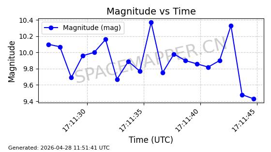 | ONEWEB-0239 | 48802 | 48802 | 2021-05-28 同日期轨道 2021-045AM 同批次轨道 | 在轨 | 109分钟 | 87.8947 | 1200.315 | 1203.229 | 0.0001922 | 2026-04-27 03:50:57 | ||