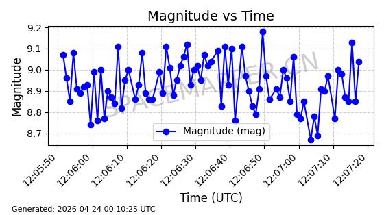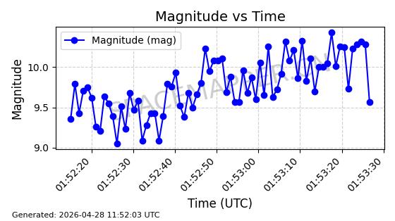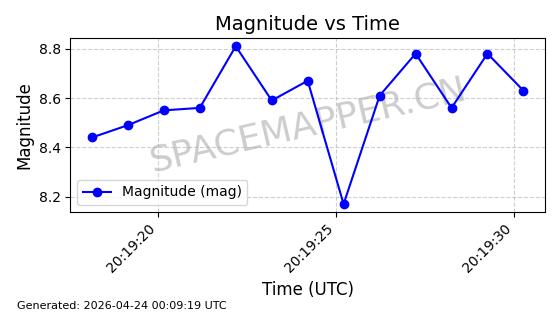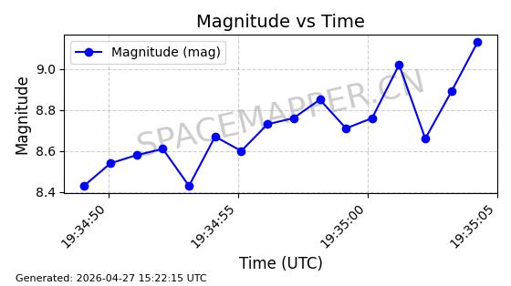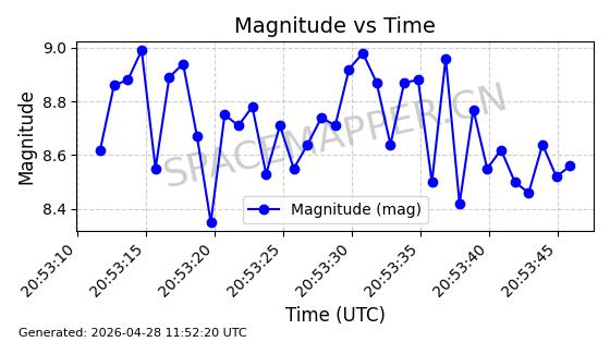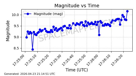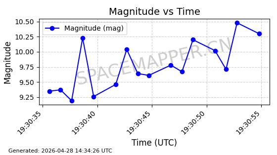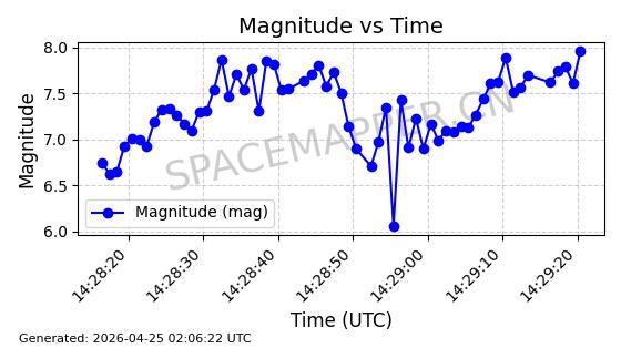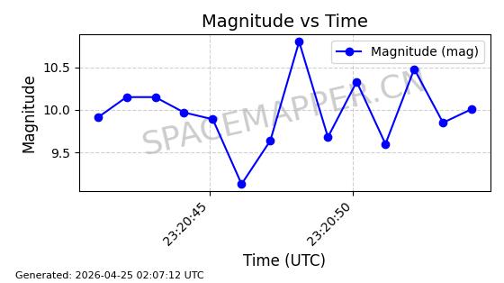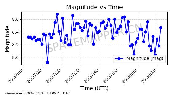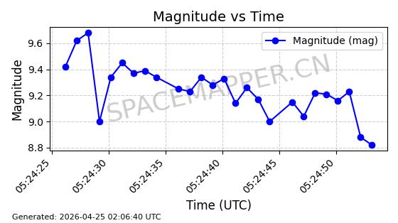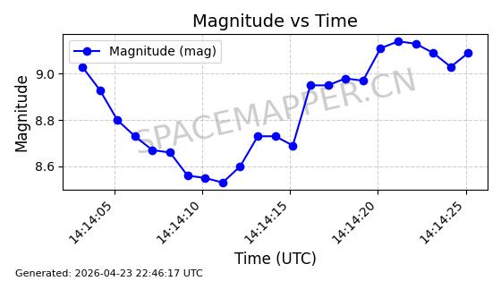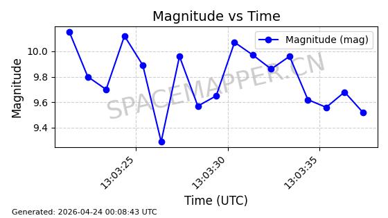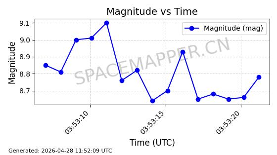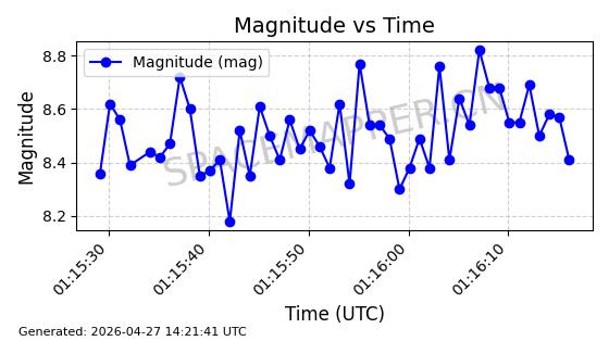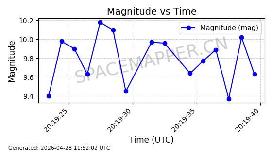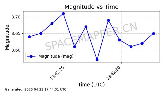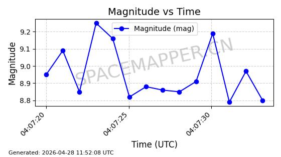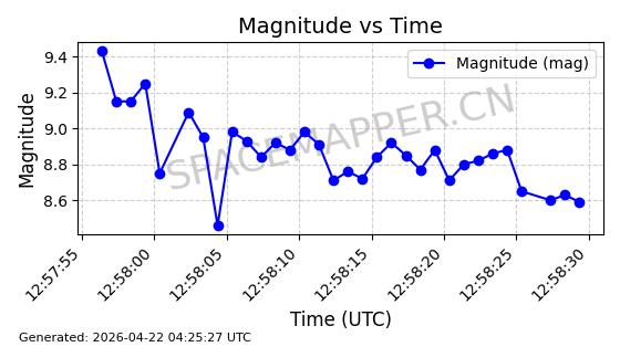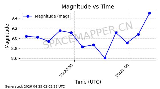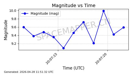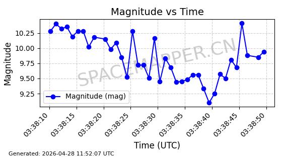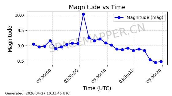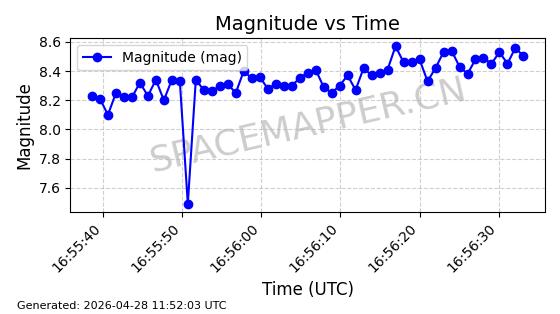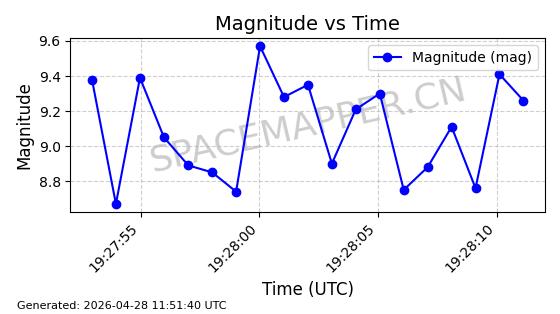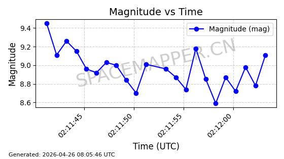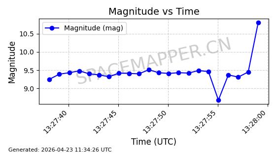 | ONEWEB-0282 | 49000 | 49000 | 2021-07-01 同日期轨道 2021-060AK 同批次轨道 | 在轨 | 109分钟 | 87.9080 | 1196.364 | 1199.154 | 0.0001841 | 2026-04-27 00:38:09 | ||