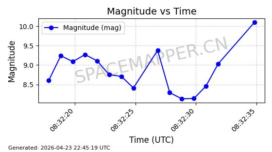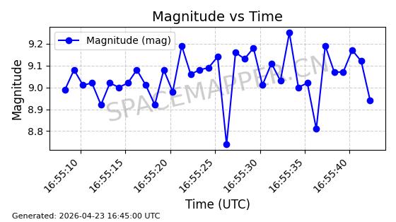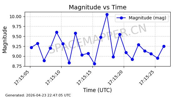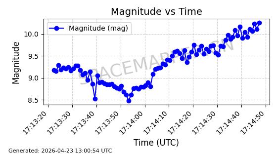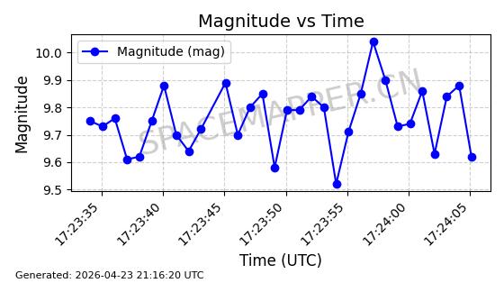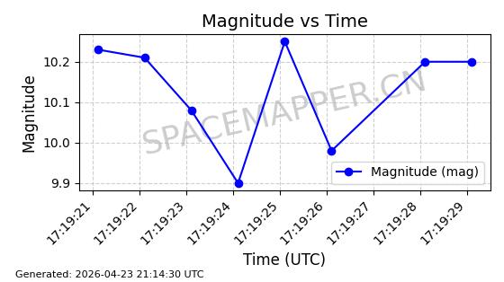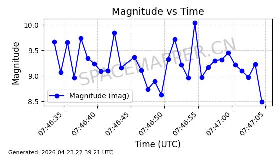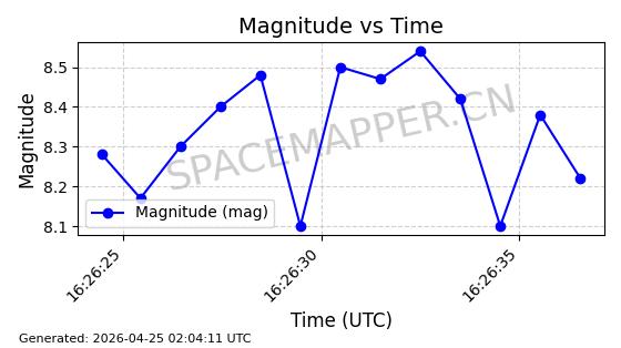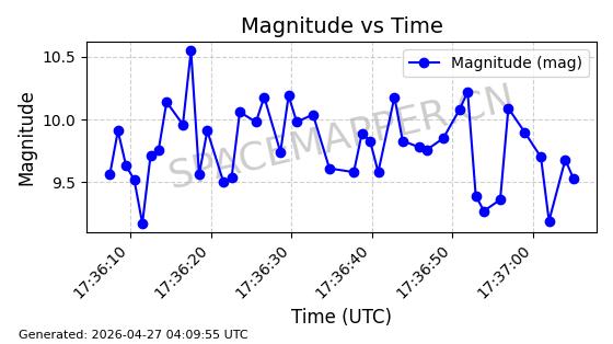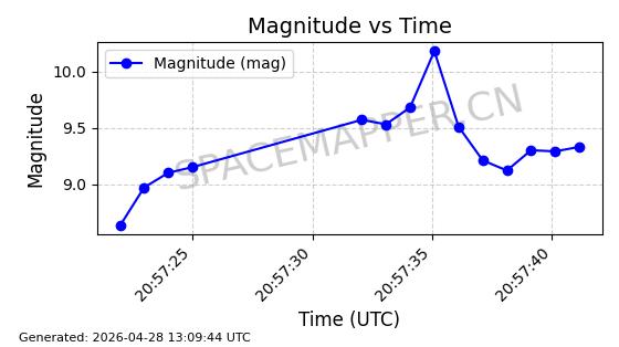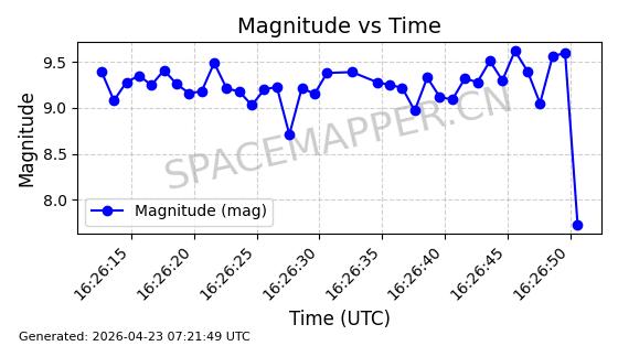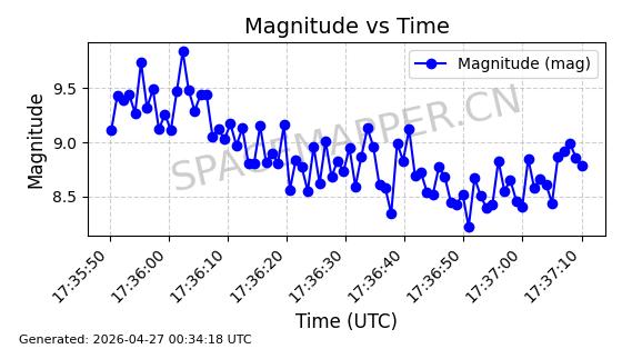 | ONEWEB-0236 | 48797 | 48797 | 2021-05-28 同日期轨道 2021-045AG 同批次轨道 | 在轨 | 109分钟 | 87.8948 | 1200.499 | 1203.049 | 0.0001682 | 2026-04-26 16:26:27 | ||