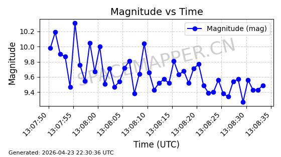 | ONEWEB-0248 | 48798 | 48798 | 2021-05-28 同日期轨道 2021-045AH 同批次轨道 | 在轨 | 109分钟 | 87.8959 | 1200.396 | 1203.12 | 0.0001796 | 2026-04-27 03:41:50 | ||