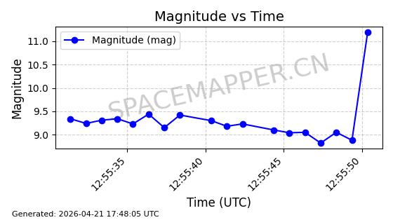 | ONEWEB-0221 | 48789 | 48789 | 2021-05-28 同日期轨道 2021-045Y 同批次轨道 | 在轨 | 109分钟 | 87.8961 | 1200.362 | 1203.178 | 0.0001857 | 2026-04-27 03:12:10 | ||