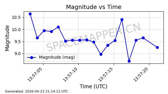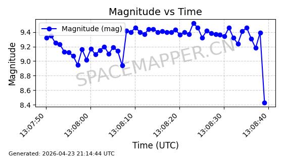 | ONEWEB-0214 | 48788 | 48788 | 2021-05-28 同日期轨道 2021-045X 同批次轨道 | 在轨 | 109分钟 | 87.8962 | 1200.109 | 1203.443 | 0.0002198 | 2026-04-27 03:01:54 | ||