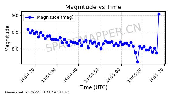 | ONEWEB-0330 | 49108 | 49108 | 2021-08-21 同日期轨道 2021-075AK 同批次轨道 | 在轨 | 109分钟 | 87.9186 | 1192.522 | 1194.898 | 0.0001568 | 2026-04-27 04:14:10 | ||