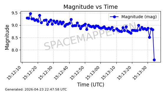 | ONEWEB-0226 | 48793 | 48793 | 2021-05-28 同日期轨道 2021-045AC 同批次轨道 | 在轨 | 109分钟 | 87.8954 | 1200.192 | 1203.35 | 0.0002083 | 2026-04-27 04:02:21 | ||
