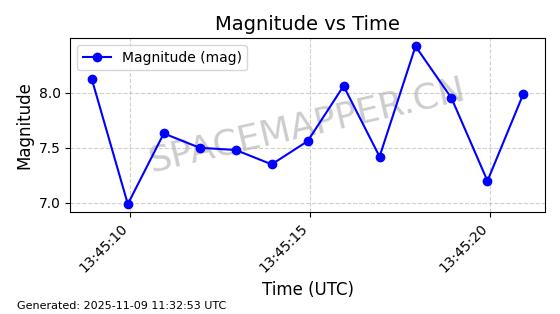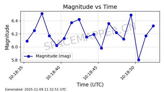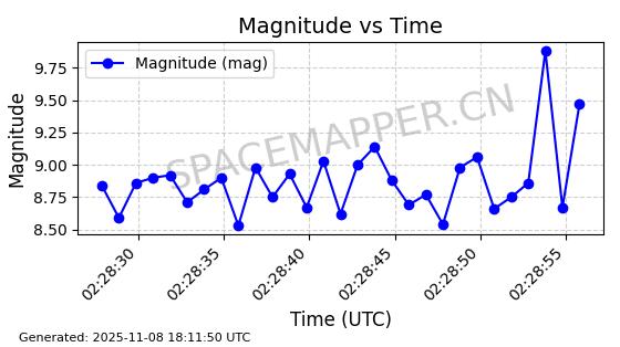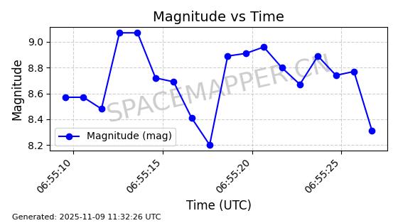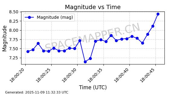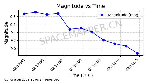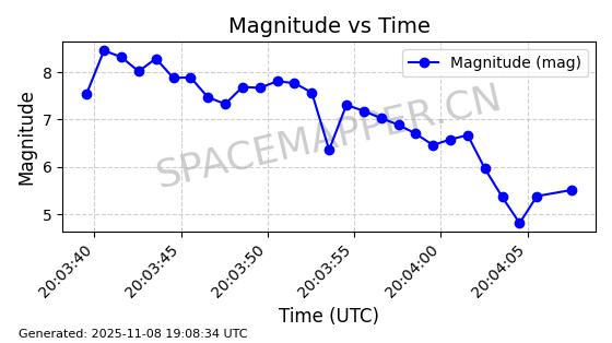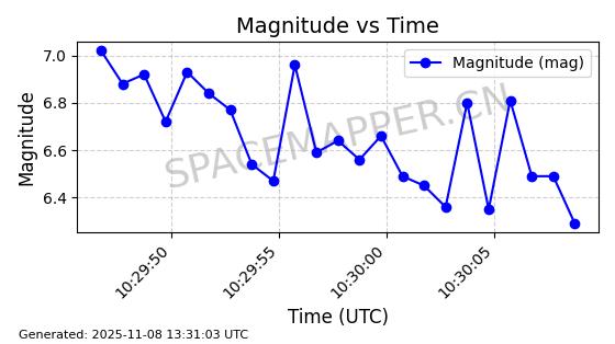 | ORBCOMM FM 25 | 25479 | 25479 | 1998-09-23 同日期轨道 1998-053E 同批次轨道 | 在轨 | 100分钟 | 45.0077 | 758.947 | 768.141 | 0.0006436 | 2025-11-06 07:52:22 | ||