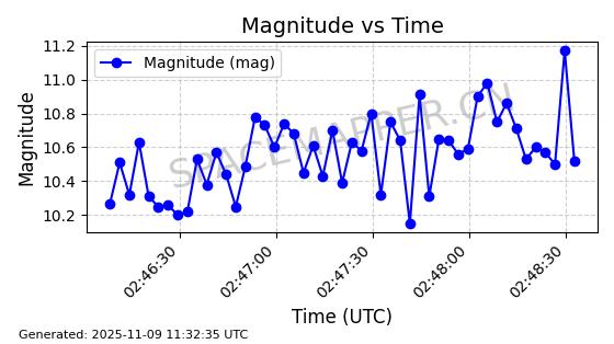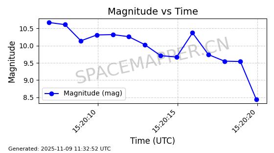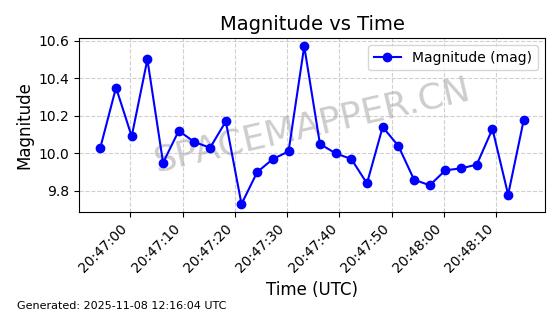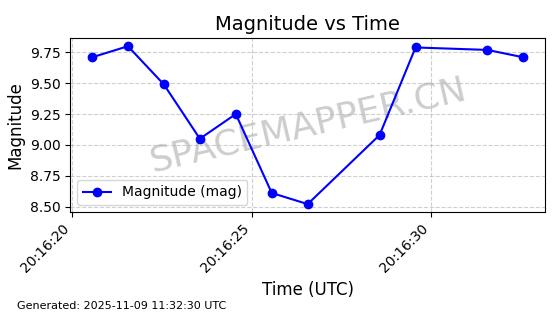 | ORBCOMM FM 20 | 25416 | 25416 | 1998-08-02 同日期轨道 1998-046D 同批次轨道 | 在轨 | 100分钟 | 44.9936 | 765.062 | 768.2 | 0.0002196 | 2025-11-06 22:50:07 | ||