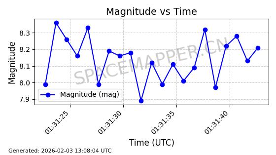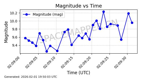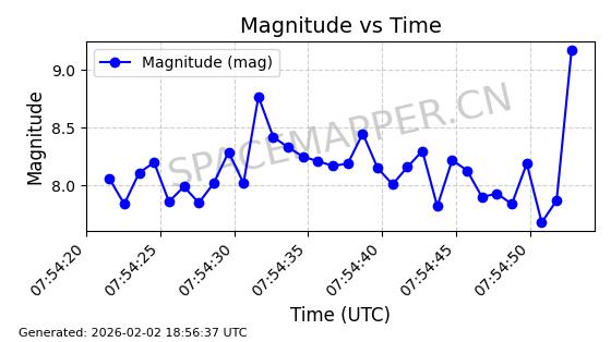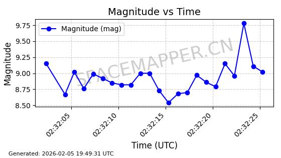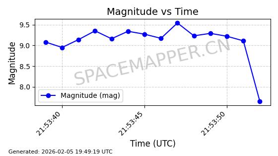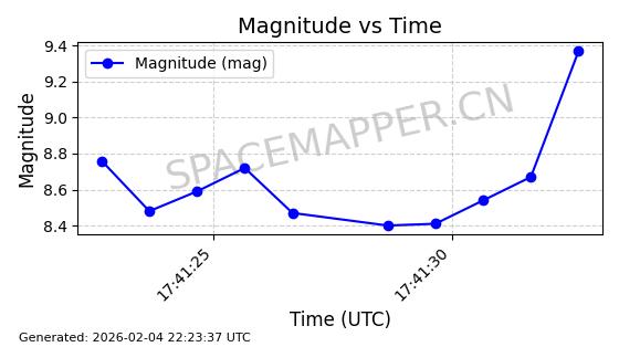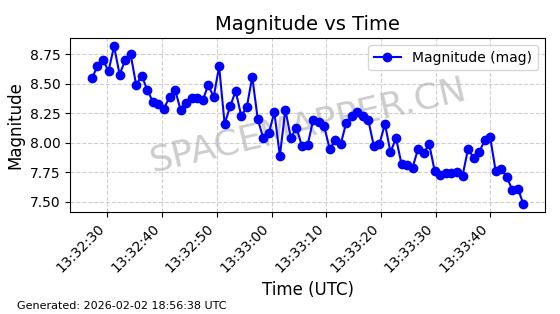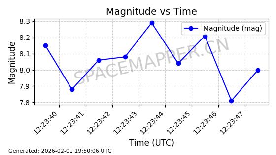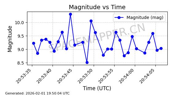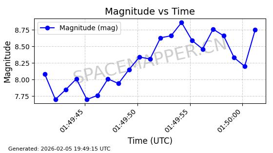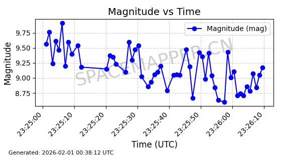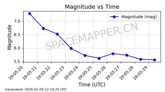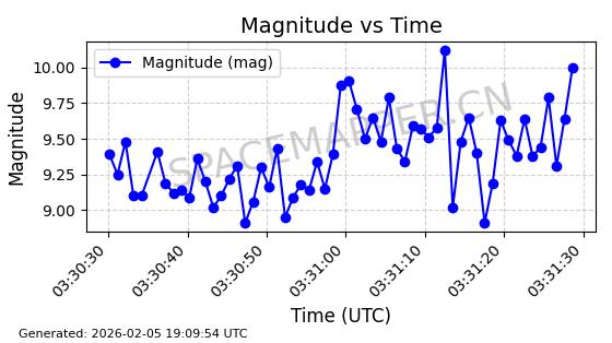 | ORBCOMM FM 25 | 25479 | 25479 | 1998-09-23 同日期轨道 1998-053E 同批次轨道 | 在轨 | 100分钟 | 45.0057 | 759.415 | 765.521 | 0.0004275 | 2026-02-05 00:28:30 | ||