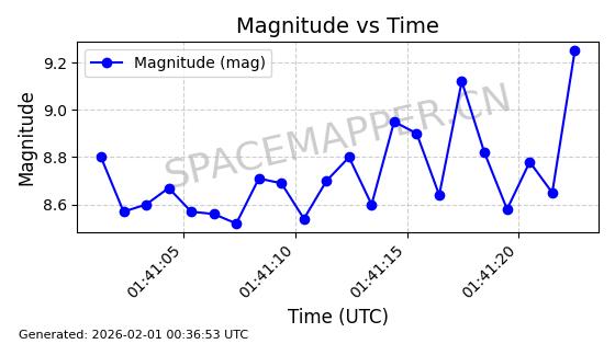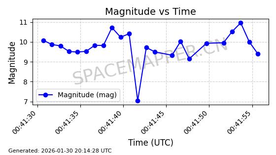 | OMNI-M1 | 26857 | 26857 | 2001-06-19 同日期轨道 2001-026A 同批次轨道 | 在轨 | 367分钟 | 44.8898 | 10570.518 | 10631.356 | 0.0017915 | 2026-01-30 03:05:00 | ||
