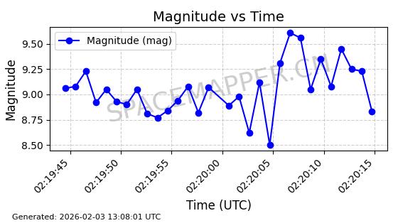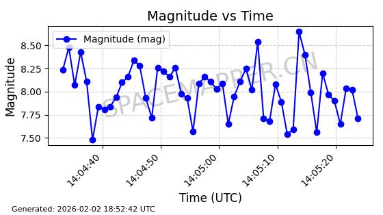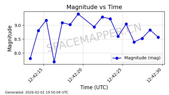 | ORBCOMM FM 20 | 25416 | 25416 | 1998-08-02 同日期轨道 1998-046D 同批次轨道 | 在轨 | 100分钟 | 44.9932 | 765.224 | 766.218 | 0.0000695 | 2026-02-05 00:12:59 | ||
