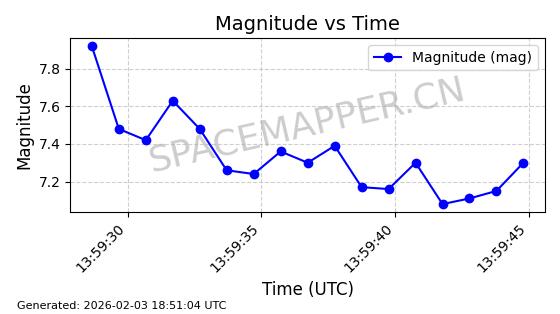 | ORBCOMM FM 13 | 25420 | 25420 | 1998-08-02 同日期轨道 1998-046H 同批次轨道 | 在轨 | 100分钟 | 44.9961 | 761.341 | 766.511 | 0.0003619 | 2026-02-04 08:05:09 | ||