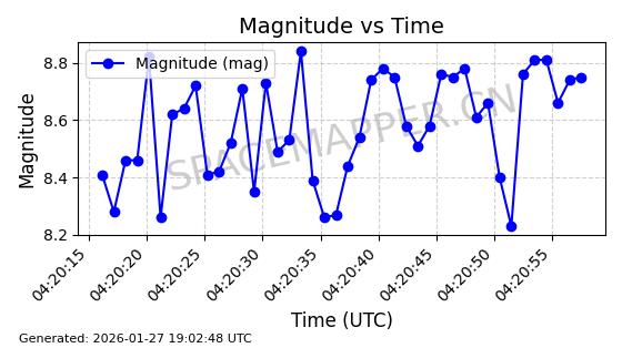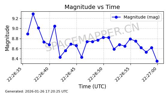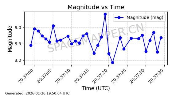 | COSMOS 2026 | 20045 | 20045 | 1989-06-07 同日期轨道 1989-042A 同批次轨道 | 在轨 | 105分钟 | 82.9433 | 948.108 | 1006.302 | 0.0039559 | 2026-01-27 07:00:09 | ||