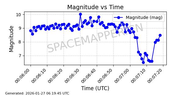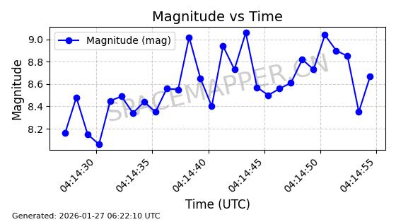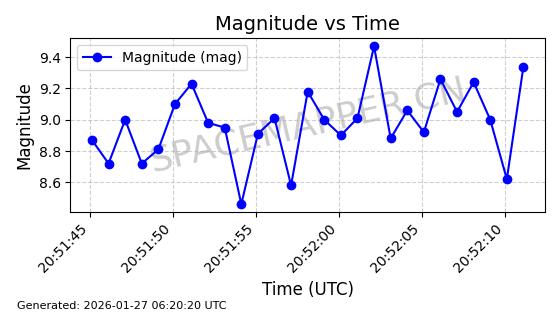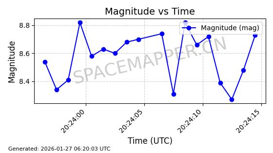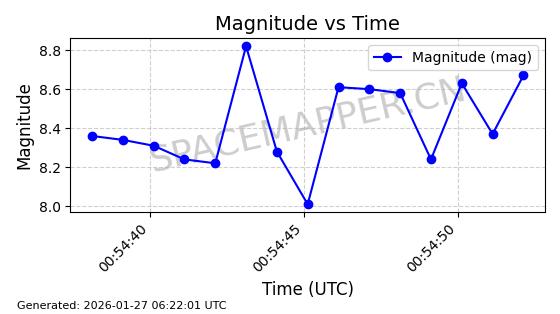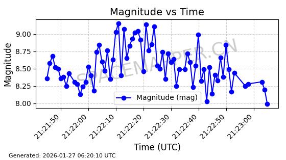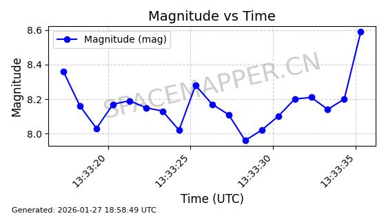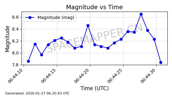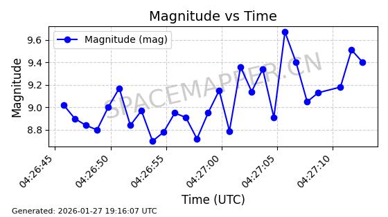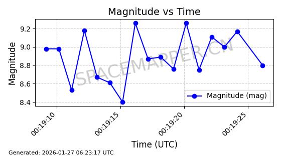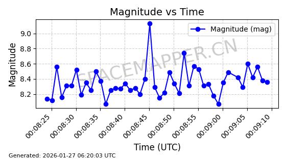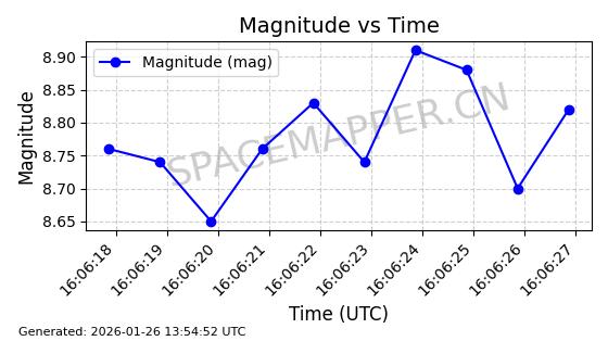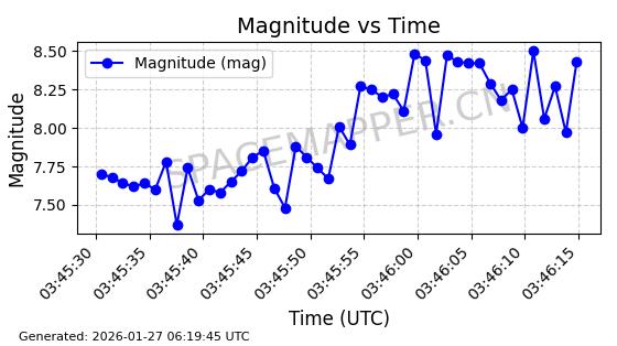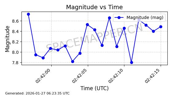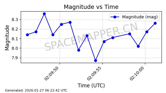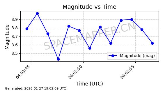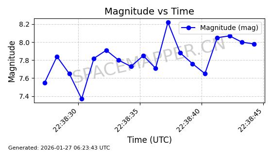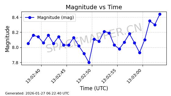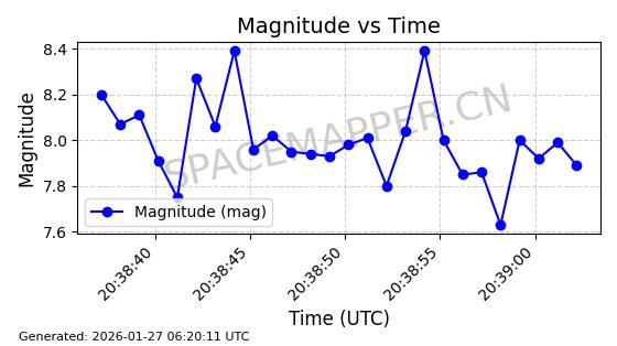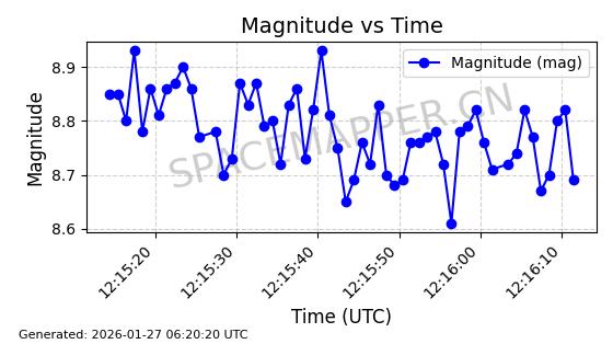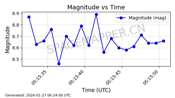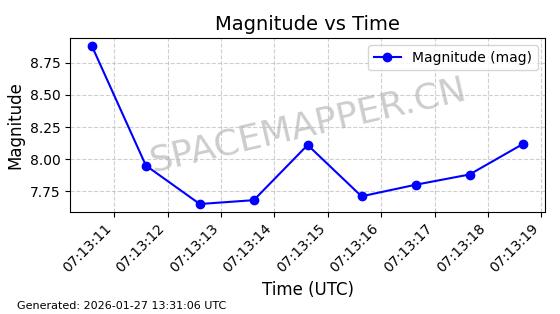 | COSMOS 789 | 8591 | 8591 | 1976-01-20 同日期轨道 1976-005A 同批次轨道 | 在轨 | 105分钟 | 82.9766 | 966.972 | 1009.29 | 0.0028724 | 2026-01-27 08:02:22 | ||