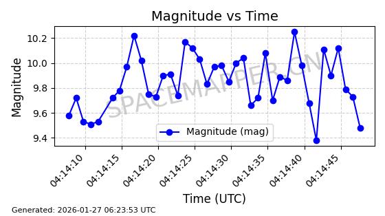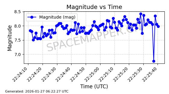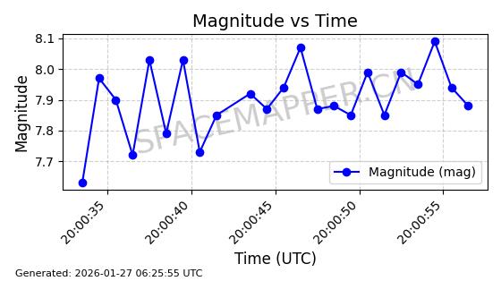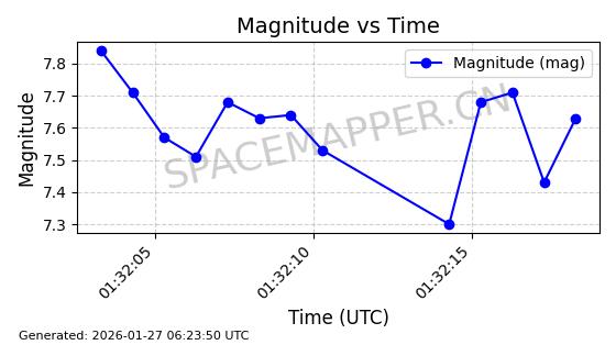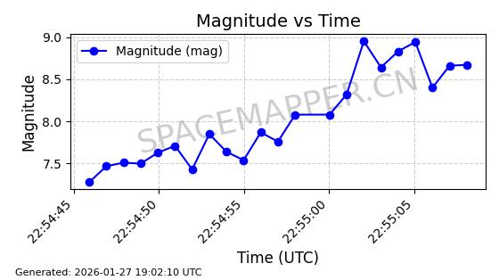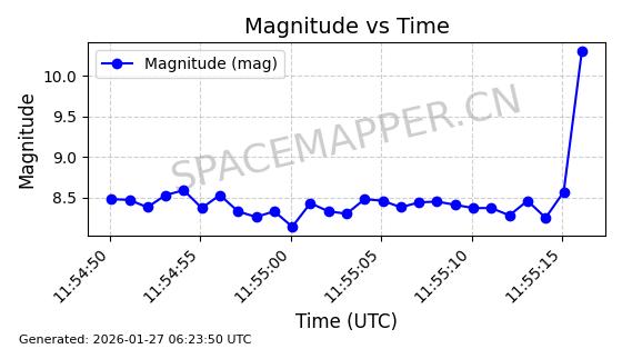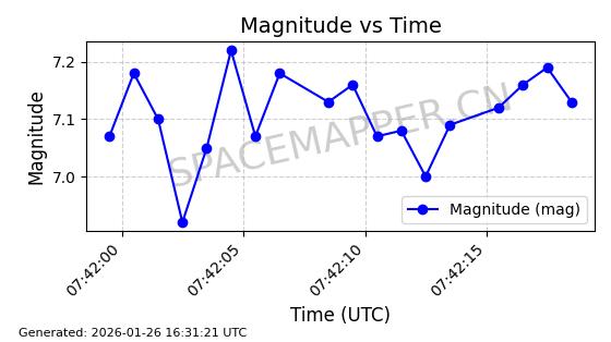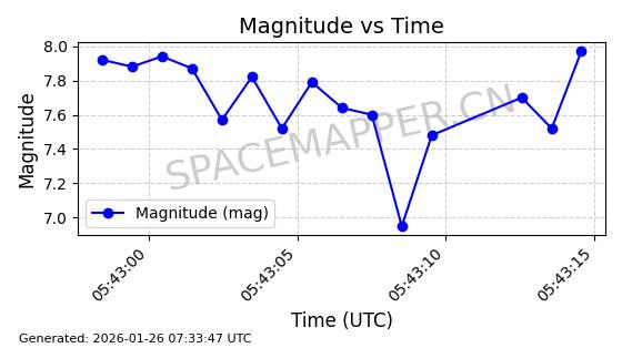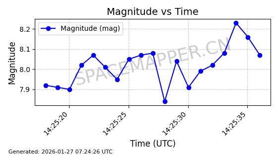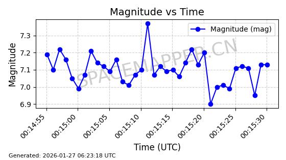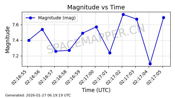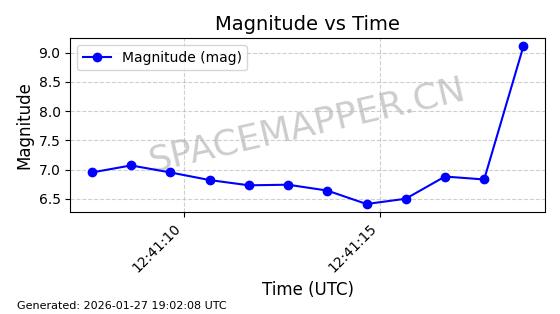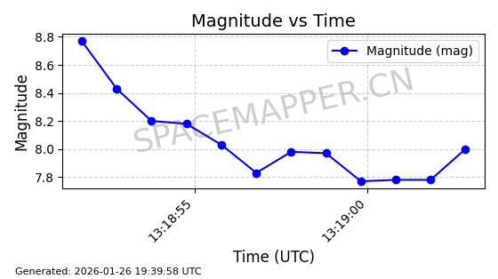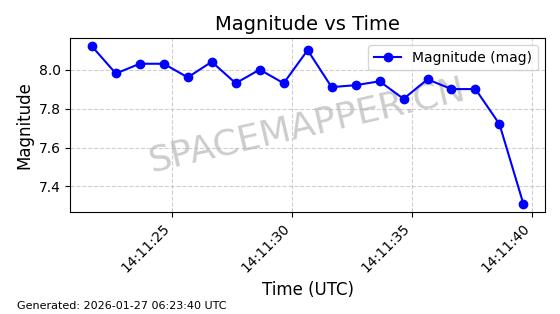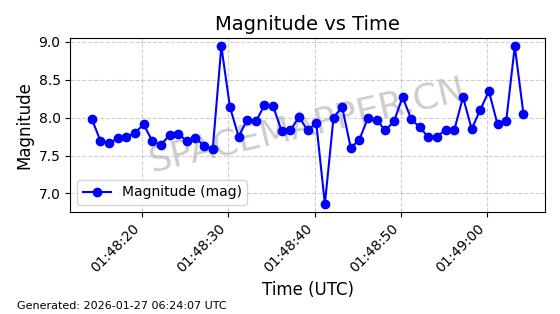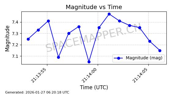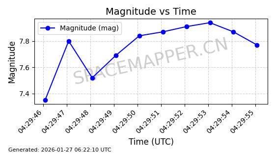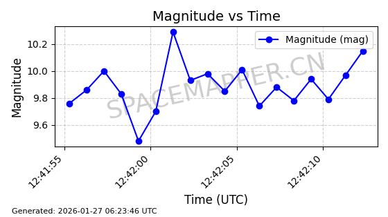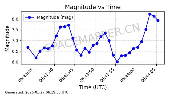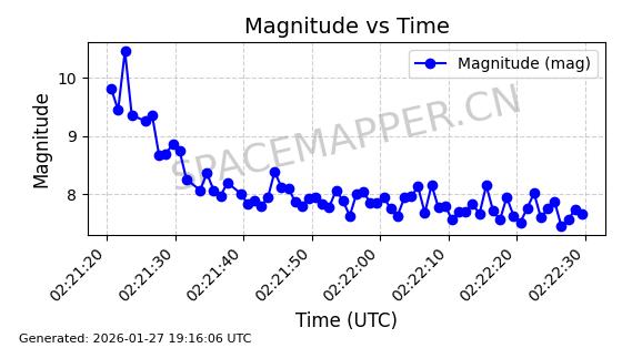| COSMOS 726 | 7736 | 7736 | 1975-04-11 同日期轨道 1975-028A 同批次轨道 | 在轨 | 104分钟 | 82.9989 | 949.407 | 989.431 | 0.0027236 | 2026-01-27 06:11:04 | ||