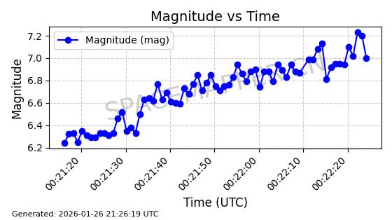 | COSMOS 2100 | 20804 | 20804 | 1990-09-14 同日期轨道 1990-083A 同批次轨道 | 在轨 | 105分钟 | 82.9380 | 956.812 | 1009.726 | 0.0035940 | 2026-01-27 04:26:17 | ||