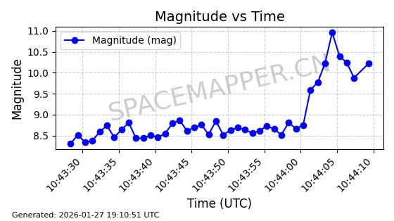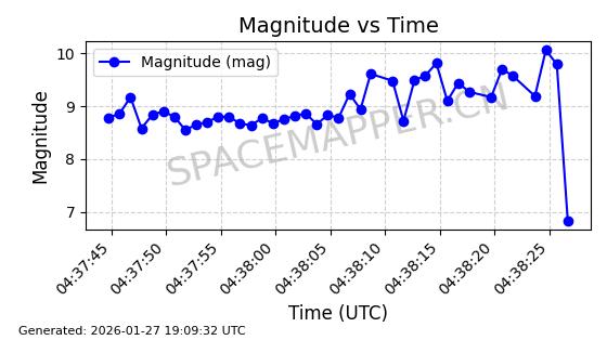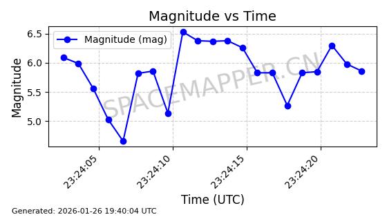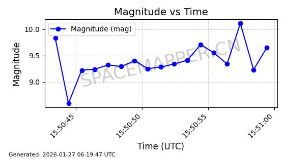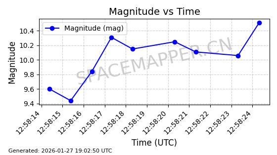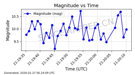 | COSMOS 1959 | 19324 | 19324 | 1988-07-18 同日期轨道 1988-062A 同批次轨道 | 在轨 | 105分钟 | 82.9473 | 951.475 | 1002.317 | 0.0034562 | 2026-01-27 07:34:53 | ||