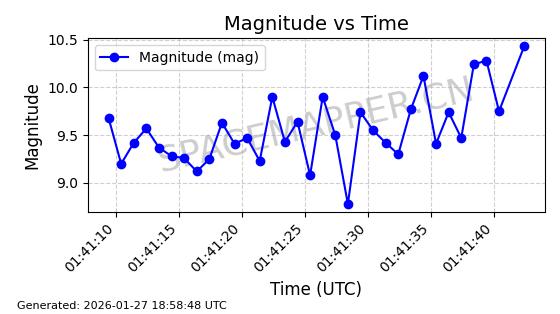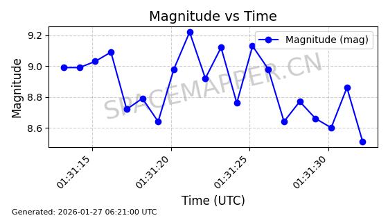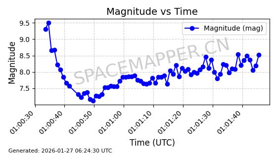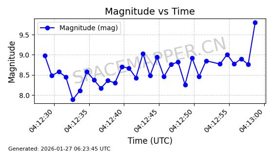 | COSMOS 1704 | 16291 | 16291 | 1985-11-28 同日期轨道 1985-110A 同批次轨道 | 在轨 | 105分钟 | 82.9322 | 958.494 | 1005.738 | 0.0032094 | 2026-01-27 02:55:52 | ||
