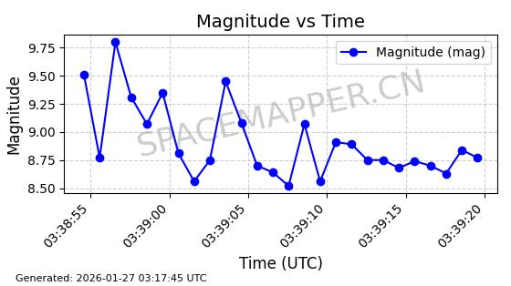 | FLOCK 4Q 29 | 58304 | 58304 | 2023-11-11 同日期轨道 2023-174BA 同批次轨道 | 在轨 | 93分钟 | 97.3995 | 422.452 | 430.536 | 0.0005940 | 2026-01-27 03:37:56 | ![]() | |