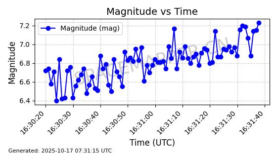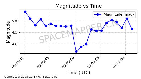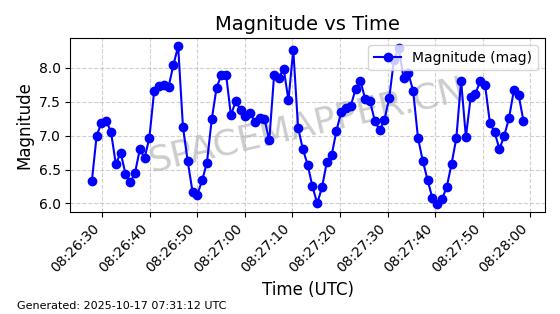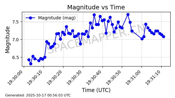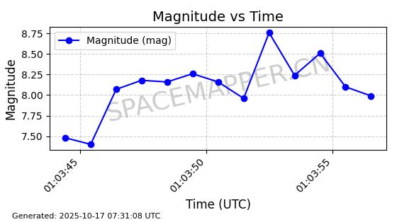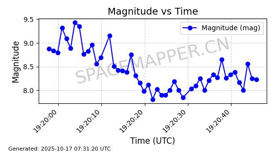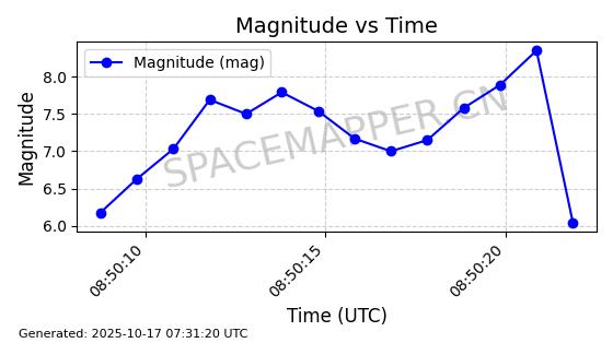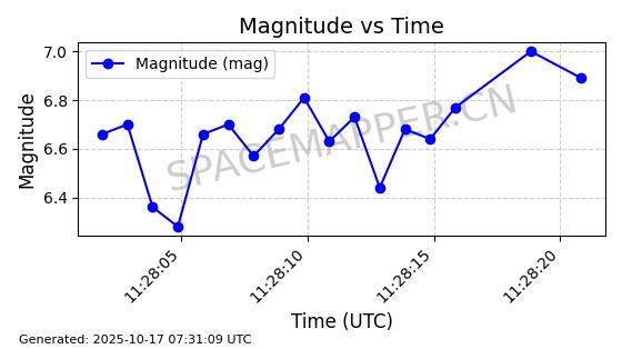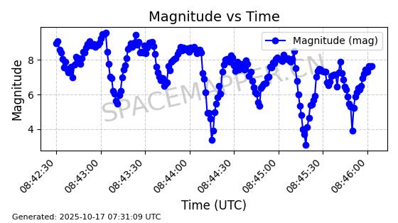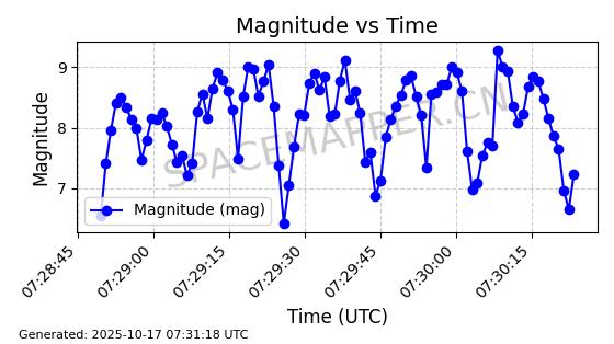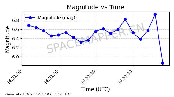 QIANFAN-61 | 62791 | 62791 | 2025-01-23 同日期轨道 2025-016G 同批次轨道 | 在轨 | 107分钟 | 88.9786 | 1056.964 | 1080.39 | 0.0015728 | 2025-10-17 03:40:57 | ![]() | |