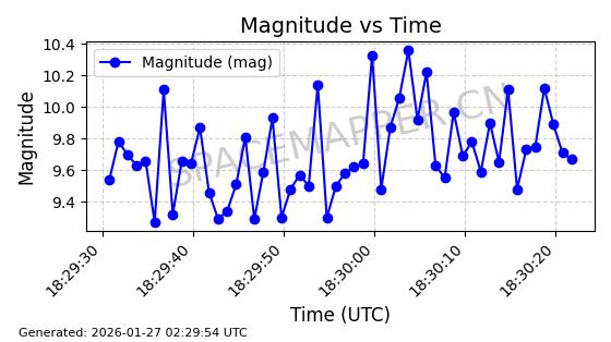 | QIANFAN-64 | 62794 | 62794 | 2025-01-23 同日期轨道 2025-016K 同批次轨道 | 在轨 | 107分钟 | 88.9739 | 1058.342 | 1078.906 | 0.0013807 | 2026-01-27 06:49:02 | ![]() | |