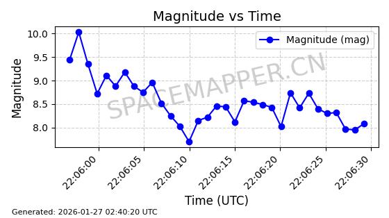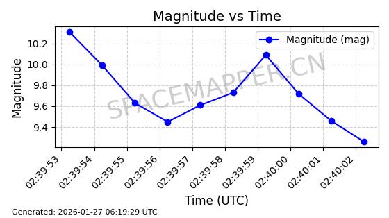 | SURCAL 159 | 2872 | 2872 | 1967-05-31 同日期轨道 1967-053F 同批次轨道 | 在轨 | 103分钟 | 69.9754 | 888.432 | 902.2 | 0.0009464 | 2026-01-27 03:37:39 | ||