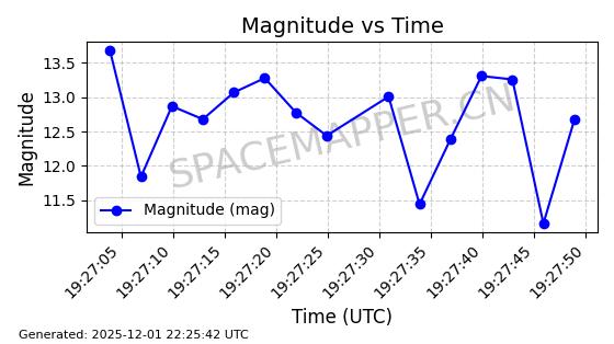 | RADUGA 13 | 14307 | 14307 | 1983-08-25 同日期轨道 1983-088A 同批次轨道 | 在轨 | 1467分钟 | 9.9111 | 36316.454 | 36453.108 | 0.0015978 | 2025-12-01 06:35:10 | ||