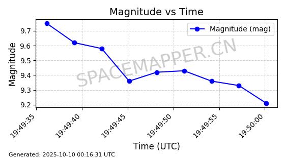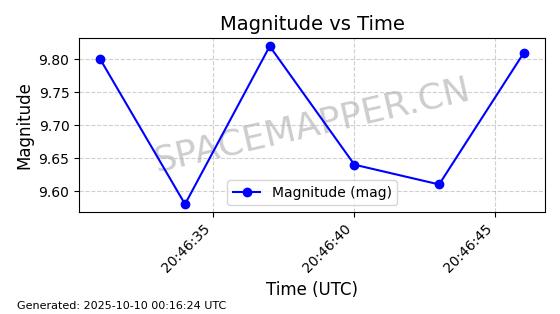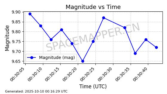 O3B MPOWER F7 | 62362 | 62362 | 2024-12-17 同日期轨道 2024-244A 同批次轨道 | 在轨 | 288分钟 | 0.0483 | 8057.272 | 8074.522 | 0.0005971 | 2025-10-10 00:17:45 | ![]() | |