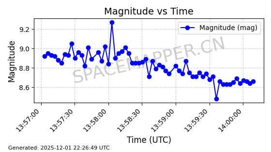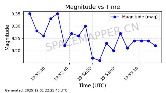 | O3B MPOWER F8 | 62363 | 62363 | 2024-12-17 同日期轨道 2024-244B 同批次轨道 | 在轨 | 288分钟 | 0.0754 | 8055.739 | 8076.023 | 0.0007021 | 2025-11-30 22:49:25 | ![]() |
