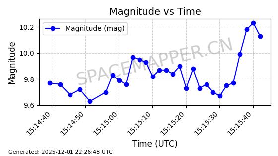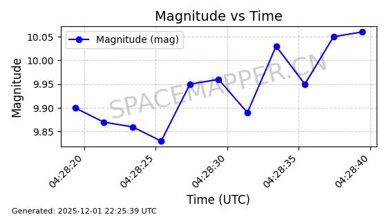 | O3B MPOWER F7 | 62362 | 62362 | 2024-12-17 同日期轨道 2024-244A 同批次轨道 | 在轨 | 288分钟 | 0.0567 | 8056.967 | 8074.827 | 0.0006182 | 2025-12-01 04:24:37 | ![]() | |