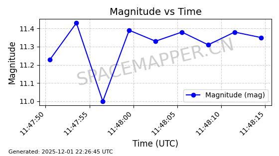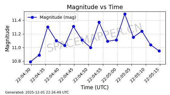 | NSS 11 (AAP-1) | 26554 | 26554 | 2000-10-01 同日期轨道 2000-059A 同批次轨道 | 在轨 | 1436分钟 | 1.6125 | 35773.538 | 35799.648 | 0.0003096 | 2025-12-01 06:52:15 | ![]() | |