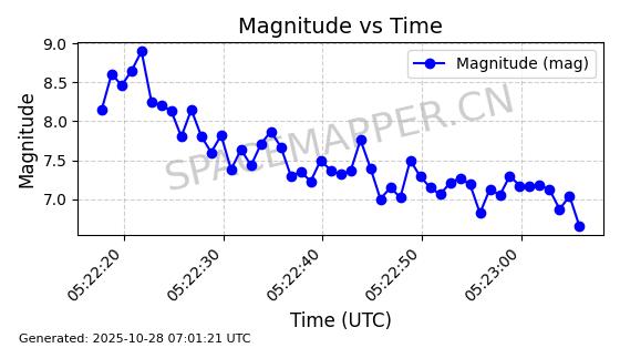 | STARLINK-11103 | 59718 | 59718 | 2024-05-10 同日期轨道 2024-088L 同批次轨道 | 在轨 | 92分钟 | 53.1589 | 358.887 | 360.561 | 0.0001242 | 2025-10-27 03:59:41 | ||