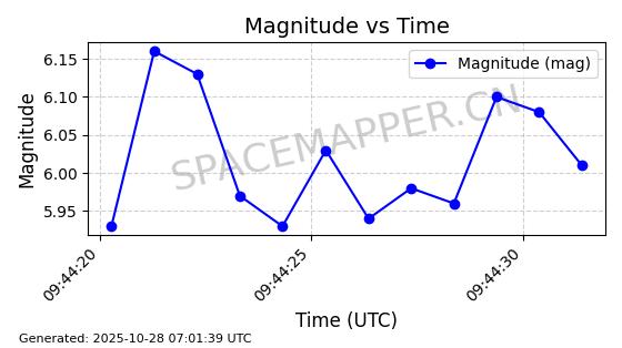 | STARLINK-11113 | 59947 | 59947 | 2024-06-05 同日期轨道 2024-107C 同批次轨道 | 在轨 | 92分钟 | 53.1591 | 358.963 | 360.445 | 0.0001099 | 2025-10-27 22:56:52 | ||