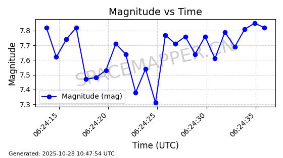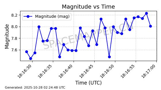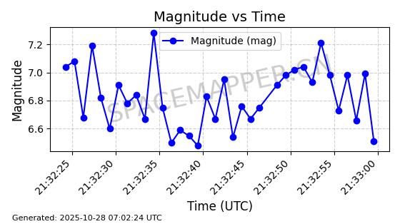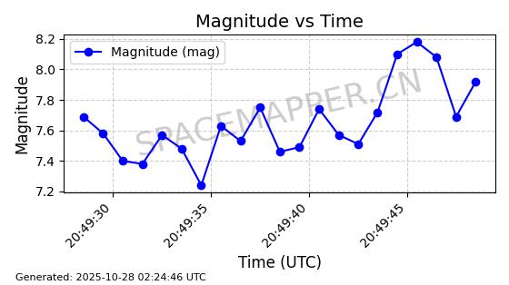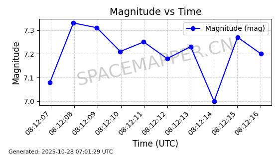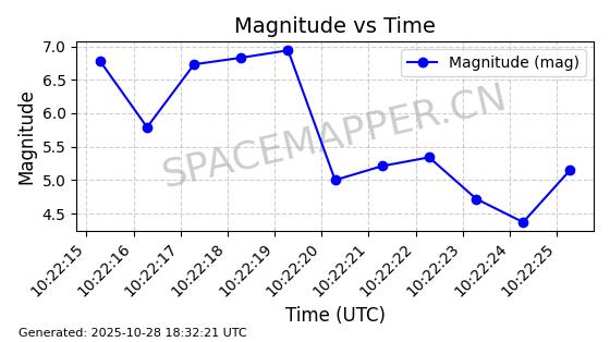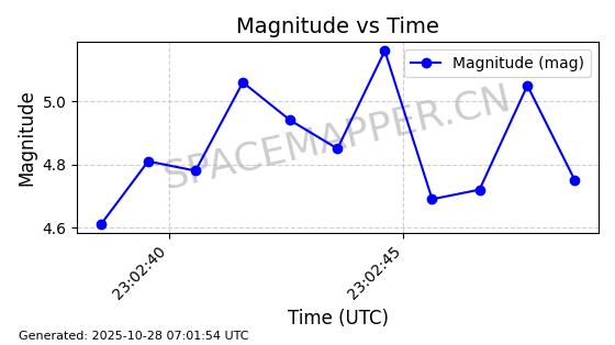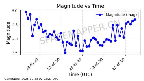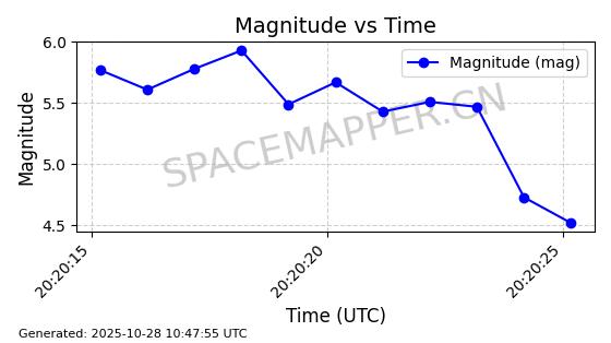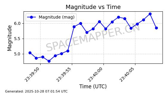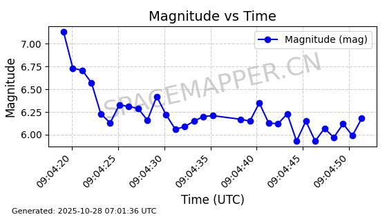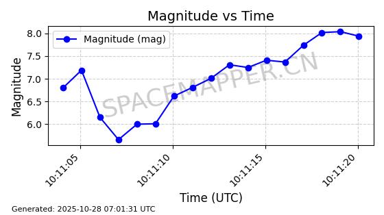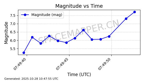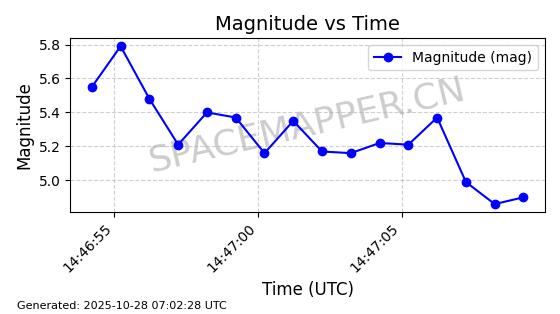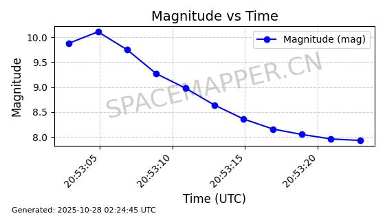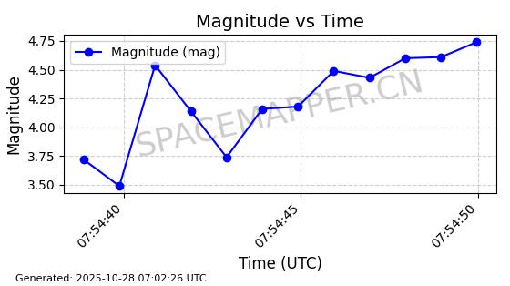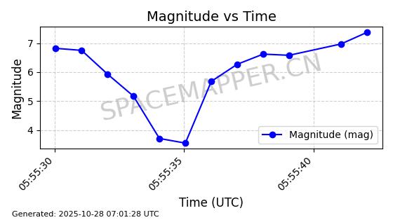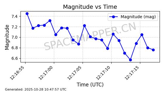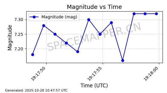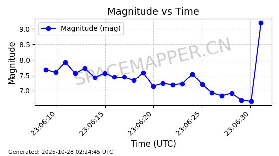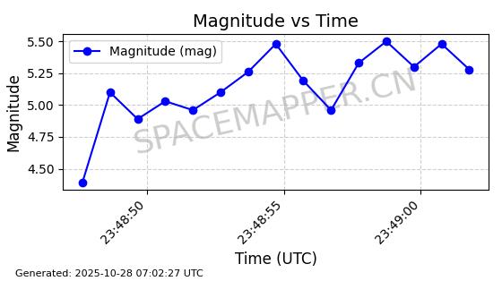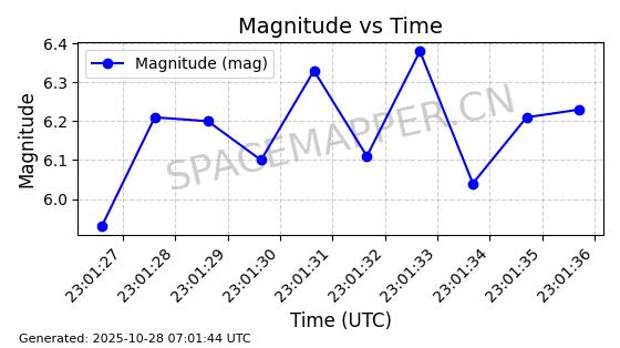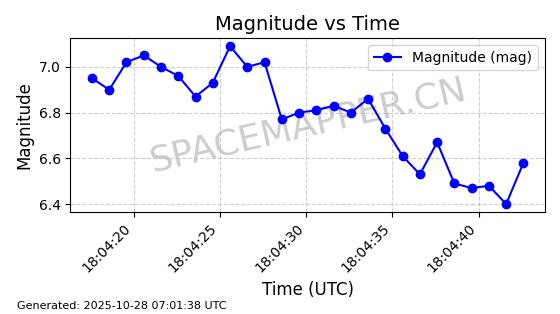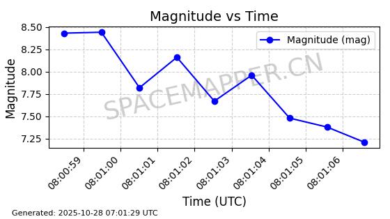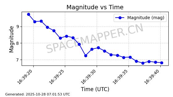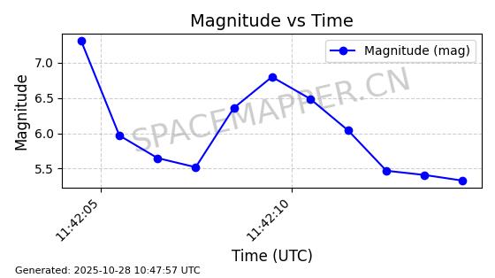 | STARLINK-11095 | 59720 | 59720 | 2024-05-10 同日期轨道 2024-088N 同批次轨道 | 在轨 | 92分钟 | 53.1584 | 359.041 | 360.425 | 0.0001026 | 2025-10-27 03:52:37 | ||