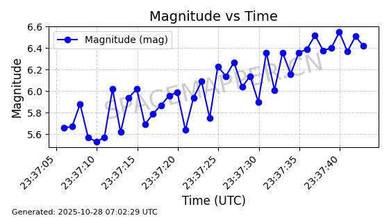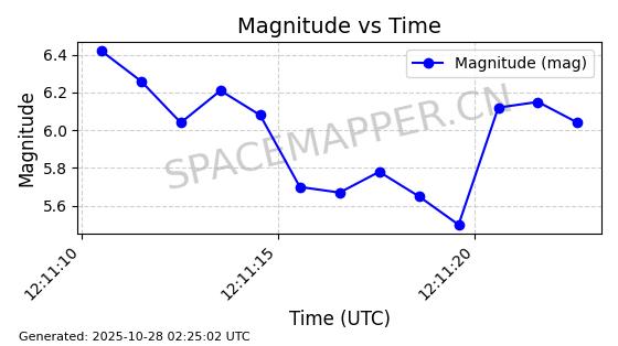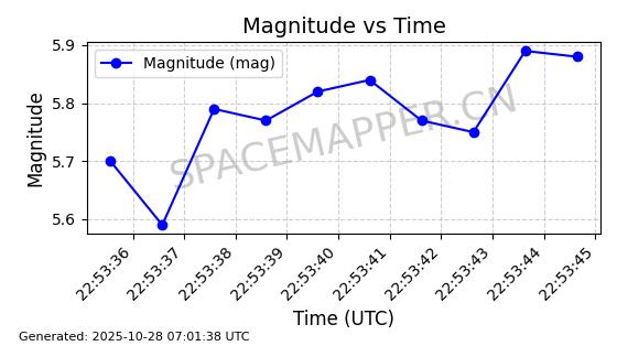| STARLINK-11092 | 59710 | 59710 | 2024-05-10 同日期轨道 2024-088C 同批次轨道 | 在轨 | 92分钟 | 53.1589 | 358.72 | 360.828 | 0.0001563 | 2025-10-27 04:56:12 | ||