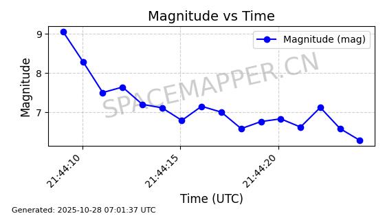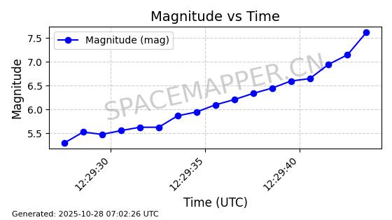 | STARLINK-1030 | 44735 | 44735 | 2019-11-11 同日期轨道 2019-074Y 同批次轨道 | 已陨落 | 87分钟 | 53.0281 | 142.753 | 151.567 | 0.0006753 | 2025-09-19 09:13:15 | ||
