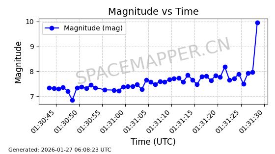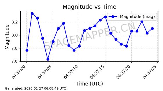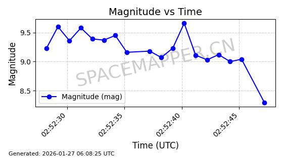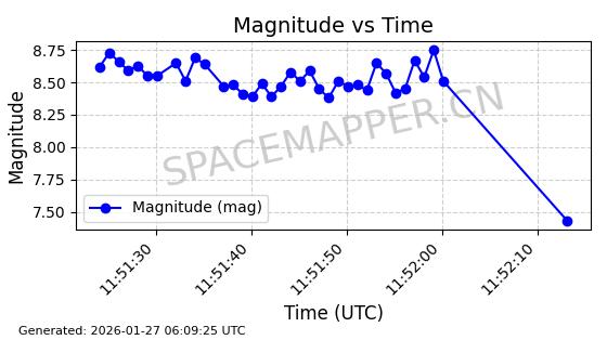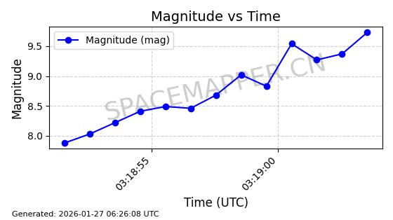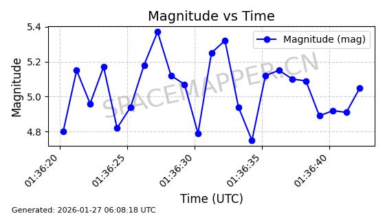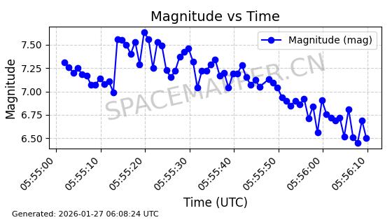 | STARLINK-11084 | 59717 | 59717 | 2024-05-10 同日期轨道 2024-088K 同批次轨道 | 在轨 | 92分钟 | 53.1563 | 358.776 | 360.742 | 0.0001458 | 2026-01-26 17:28:06 | ||
