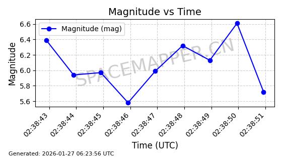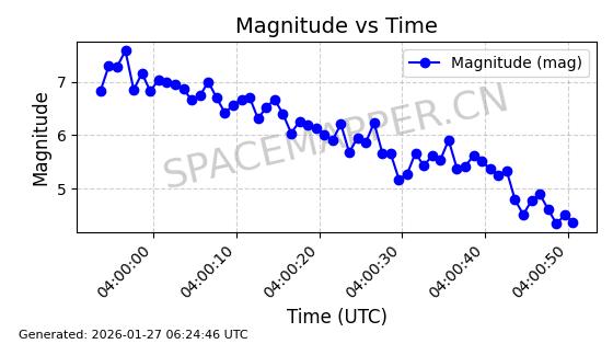 | STARLINK-11094 | 59714 | 59714 | 2024-05-10 同日期轨道 2024-088G 同批次轨道 | 在轨 | 92分钟 | 53.1582 | 359.336 | 360.138 | 0.0000595 | 2026-01-26 19:20:59 | ||