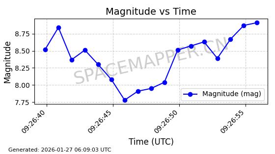 | STARLINK-11097 | 59759 | 59759 | 2024-05-14 同日期轨道 2024-091G 同批次轨道 | 在轨 | 92分钟 | 53.1584 | 358.795 | 360.675 | 0.0001395 | 2026-01-27 07:20:20 | ||