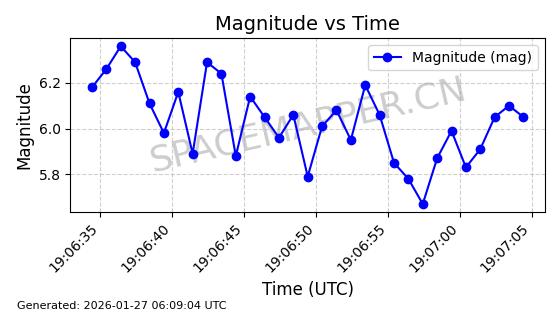| STARLINK-11102 | 60065 | 60065 | 2024-06-19 同日期轨道 2024-113G 同批次轨道 | 在轨 | 92分钟 | 53.1597 | 358.734 | 360.664 | 0.0001431 | 2026-01-27 07:14:59 | ||