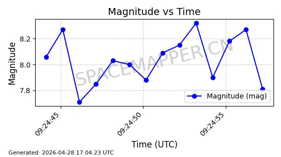 | STARLINK-11084 | 59717 | 59717 | 2024-05-10 同日期轨道 2024-088K 同批次轨道 | 在轨 | 92分钟 | 53.1601 | 358.936 | 360.566 | 0.0001209 | 2026-04-28 06:49:28 | ||