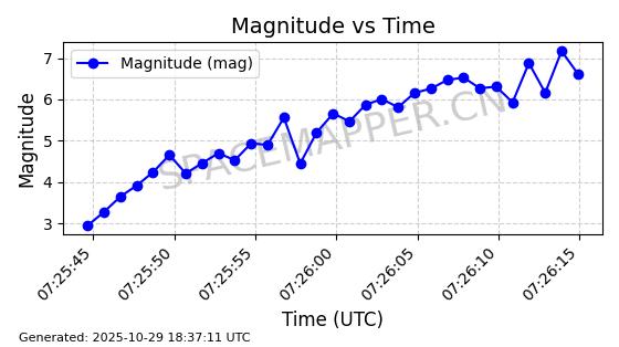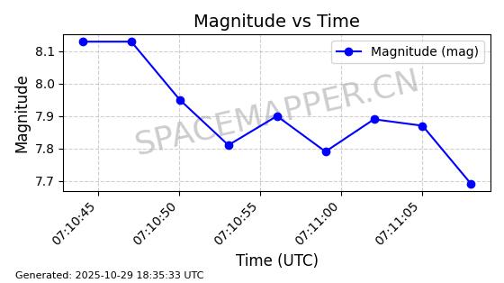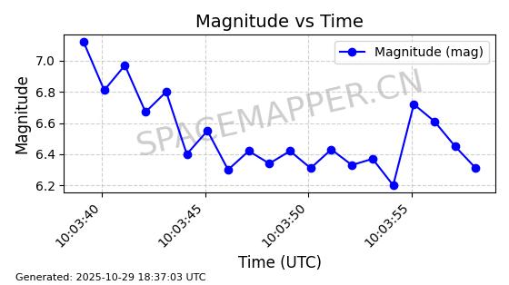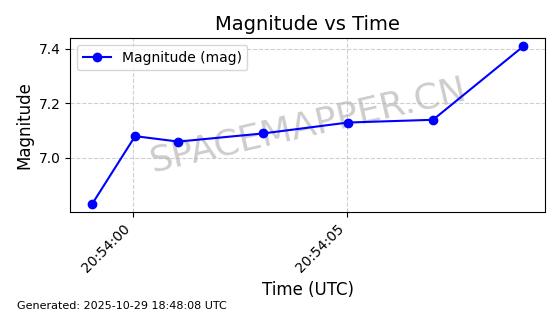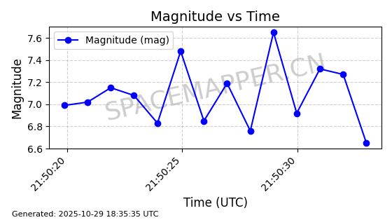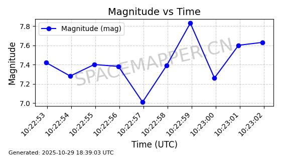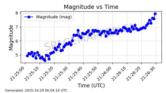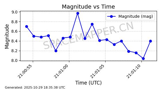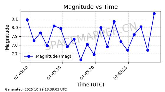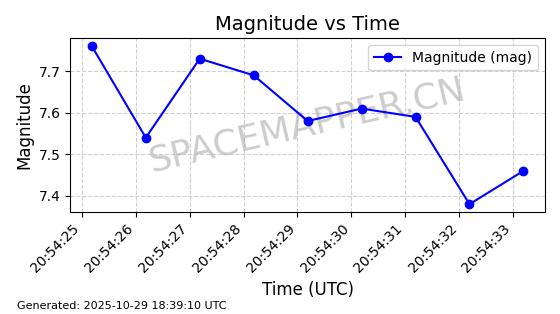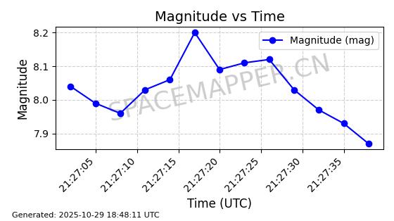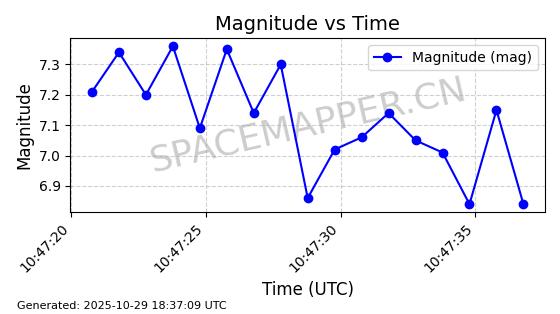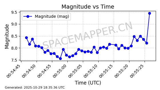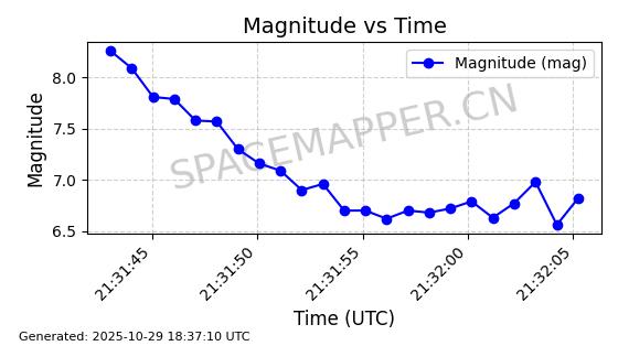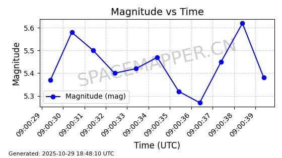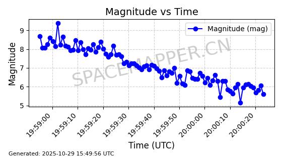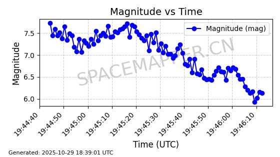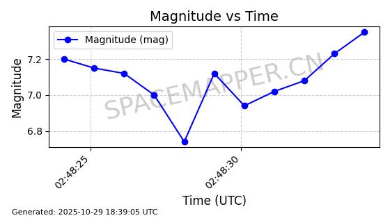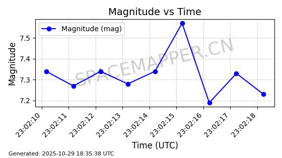 | STARLINK-2030 | 47647 | 47647 | 2021-02-16 同日期轨道 2021-012AD 同批次轨道 | 已陨落 | 88分钟 | 53.0232 | 143.25 | 158.952 | 0.0012024 | 2025-07-03 17:23:45 | ||