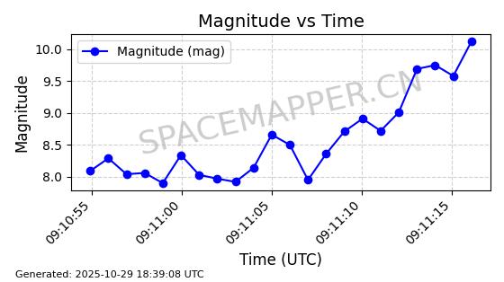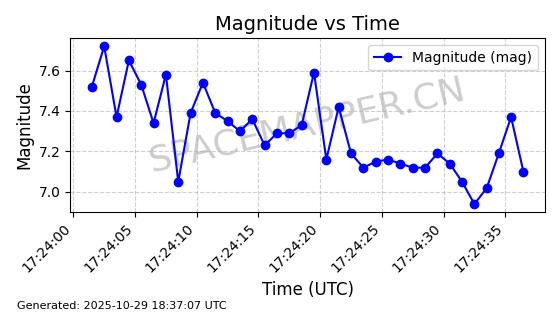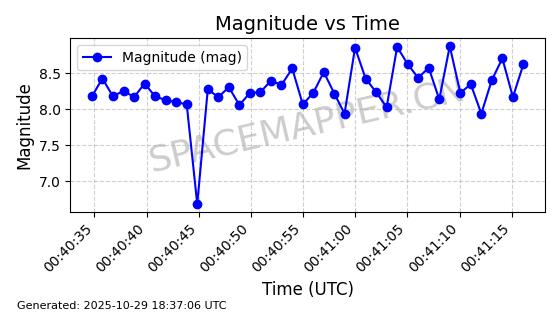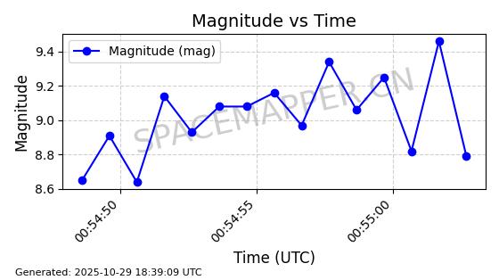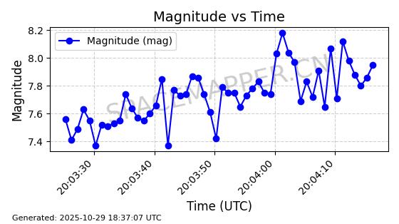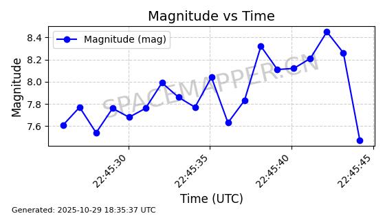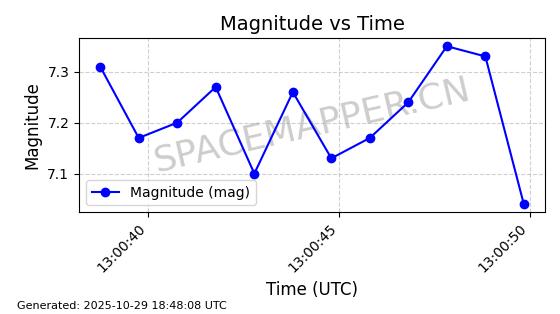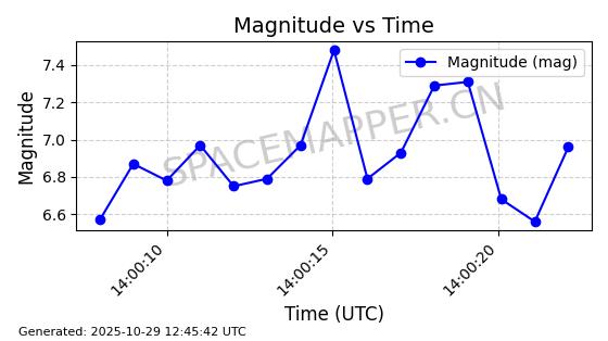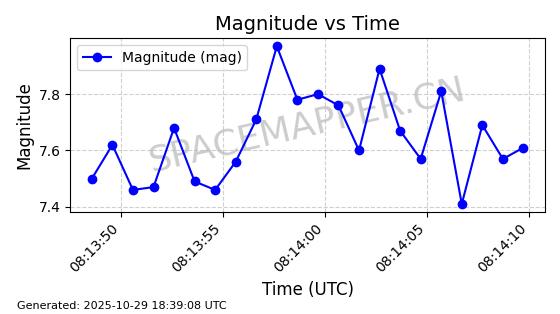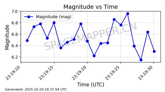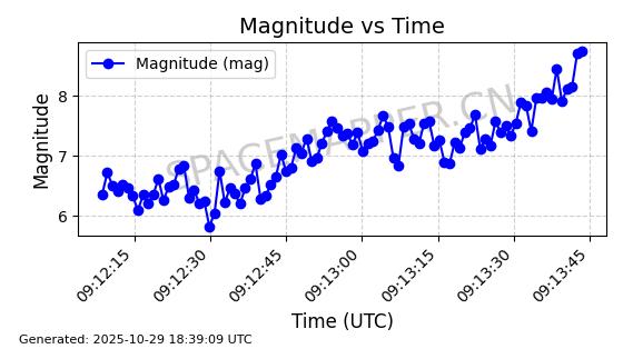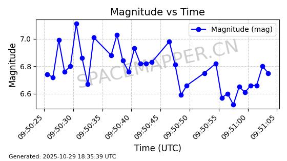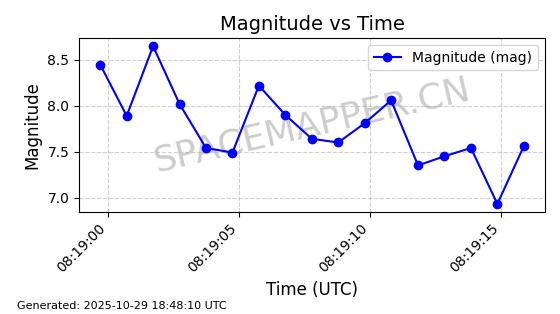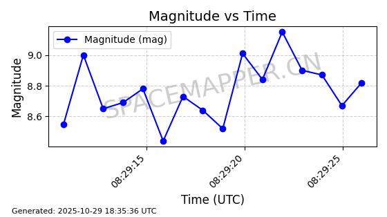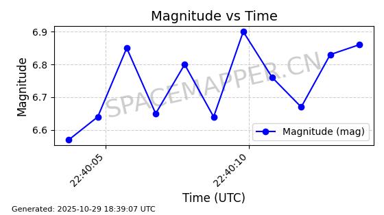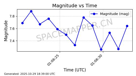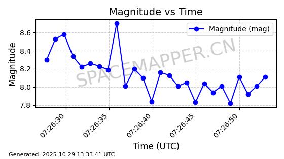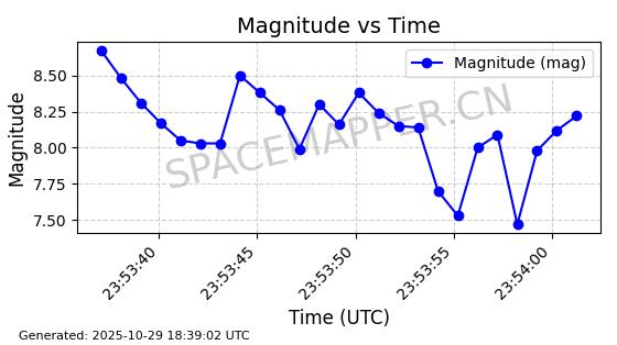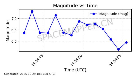 | STARLINK-2030 | 47647 | 47647 | 2021-02-16 同日期轨道 2021-012AD 同批次轨道 | 已陨落 | 88分钟 | 53.0232 | 143.25 | 158.952 | 0.0012024 | 2025-07-03 17:23:45 | ||