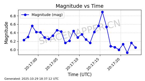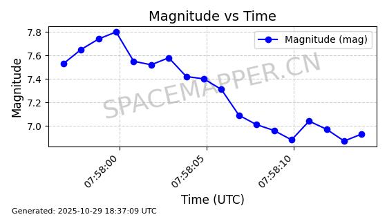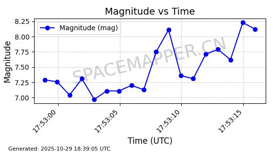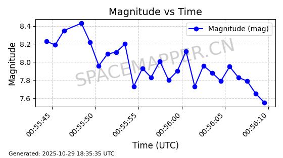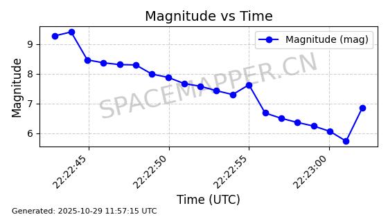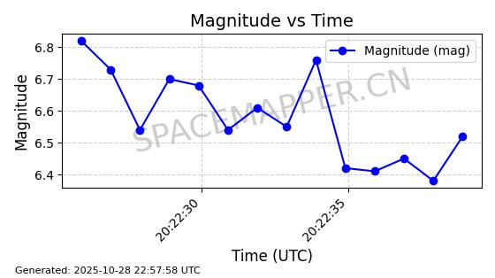 | STARLINK-2025 | 47607 | 47607 | 2021-02-04 同日期轨道 2021-009BM 同批次轨道 | 已陨落 | 88分钟 | 53.0148 | 149.626 | 152.908 | 0.0002513 | 2025-03-25 01:17:20 | ||