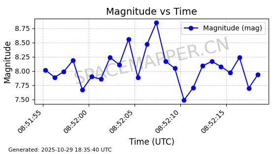 | STARLINK-2035 | 47651 | 47651 | 2021-02-16 同日期轨道 2021-012AH 同批次轨道 | 已陨落 | 87分钟 | 53.0275 | 148.99 | 152.304 | 0.0002537 | 2025-03-30 05:47:36 | ||