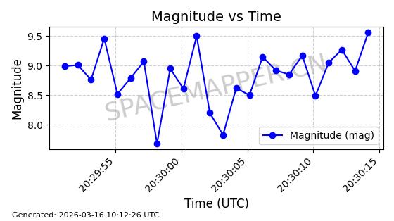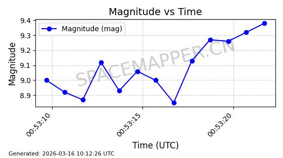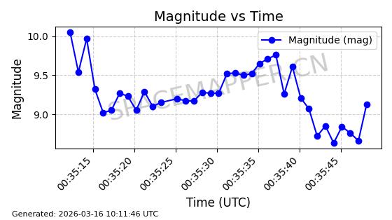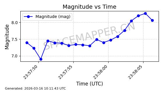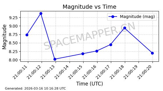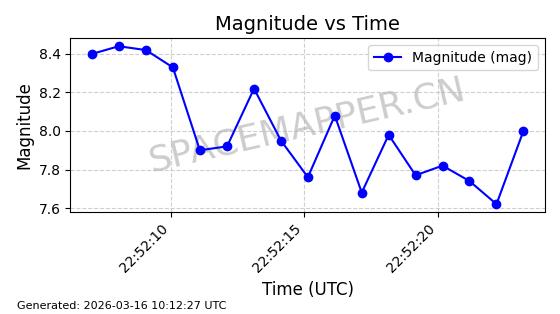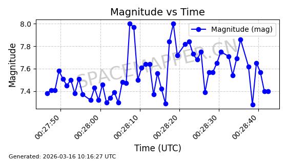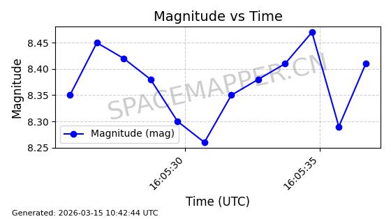| 卫星名称 | AOE ID | NORAD ID | 发射日期 国际编号 | 在轨状态 | 轨道周期 | 轨道倾角 (度) | 近地点 (Km) | 远地点 (Km) | 偏心率 | 更新时间 (UTC) | 近期光变曲线 | 服务 |