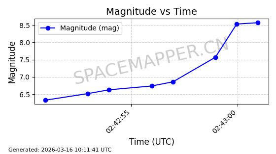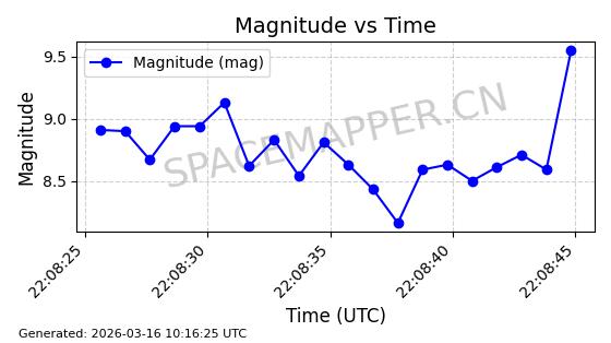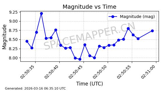 | STARLINK-2030 | 47647 | 47647 | 2021-02-16 同日期轨道 2021-012AD 同批次轨道 | 已陨落 | 88分钟 | 53.0232 | 143.25 | 158.952 | 0.0012024 | 2025-07-03 17:23:45 | ||