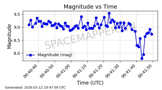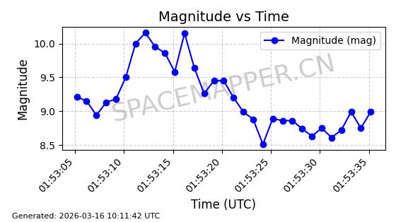 | STARLINK-2196 | 47773 | 47773 | 2021-03-04 同日期轨道 2021-017BD 同批次轨道 | 在轨 | 94分钟 | 53.1583 | 474.444 | 475.918 | 0.0001075 | 2026-03-14 17:55:57 | ||