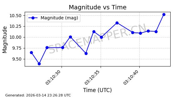 | STARLINK-2161 | 47747 | 47747 | 2021-03-04 同日期轨道 2021-017AB 同批次轨道 | 在轨 | 94分钟 | 53.1615 | 474.436 | 476.1 | 0.0001213 | 2026-03-14 23:19:54 | ||