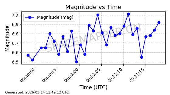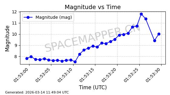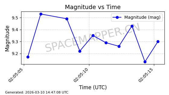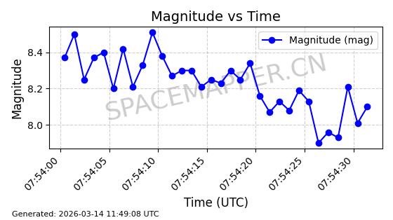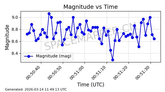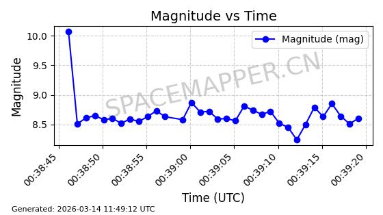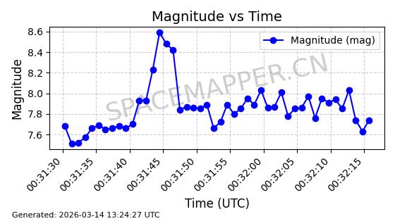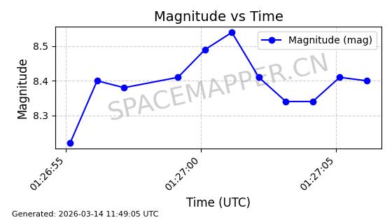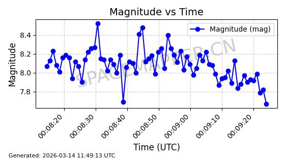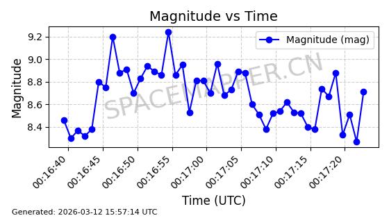 在轨 93分钟 53.1591 431.447 432.597 0.0000843 2026-03-13