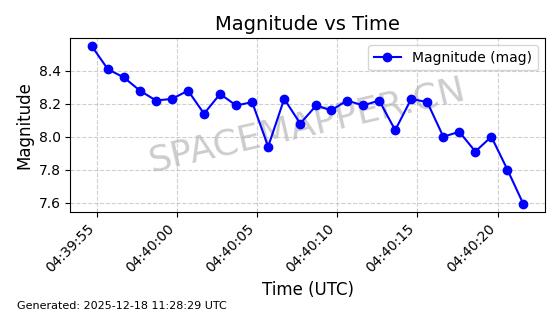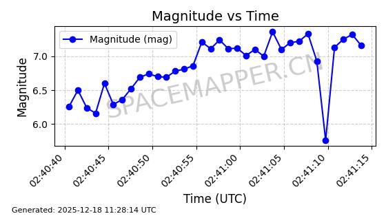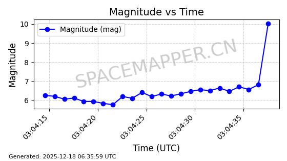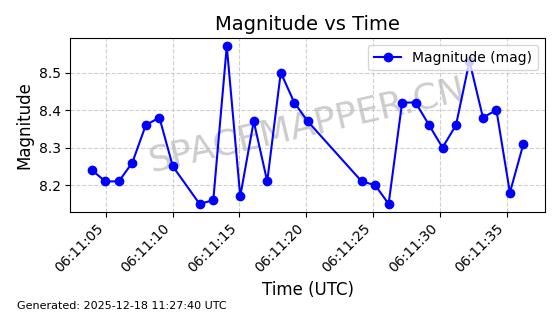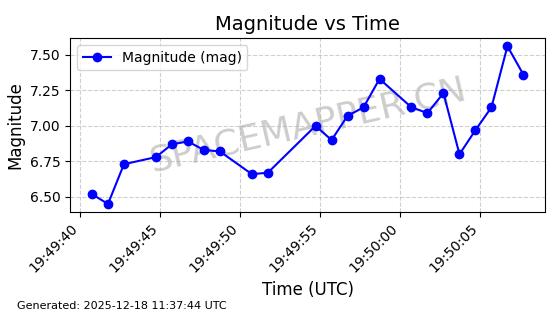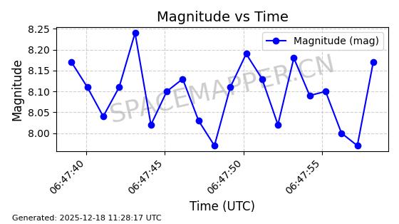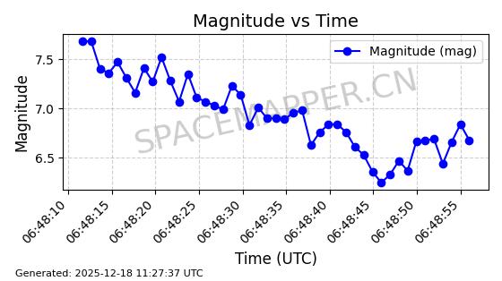 | STARLINK-2651 | 48654 | 48654 | 2021-05-26 同日期轨道 2021-044S 同批次轨道 | 已陨落 | 88分钟 | 53.0344 | 158.285 | 164.317 | 0.0004611 | 2025-11-18 18:58:09 | ||
