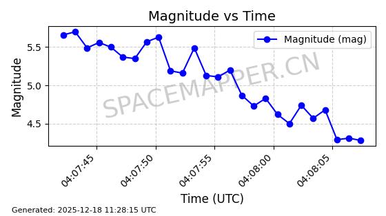 | STARLINK-2748 | 48694 | 48694 | 2021-05-26 同日期轨道 2021-044BJ 同批次轨道 | 在轨 | 96分钟 | 53.0560 | 546.508 | 547.852 | 0.0000970 | 2025-12-17 00:43:31 | ||